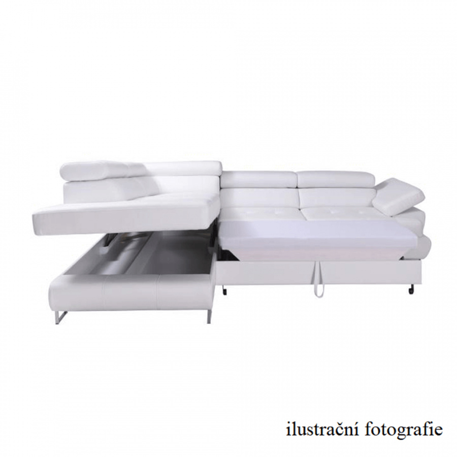 Rohová, Dekorativní prošití, Polohovací záhlaví, Celočalouněná, Rozkládací, S úložným prostorem