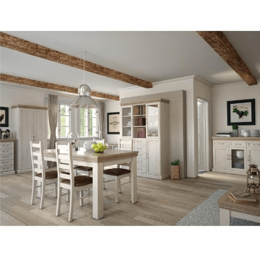 RTV stolek RN se šesti šuplíky otevřenými úložnými prostory z elegantního sektorového systému Royal v provensálském stylu. Vhodný na zařízení obývacích pokojů či ložnic. Materiál: korpus DTD laminovaná + ozdobné lišty. Barevné provedení: sosna skandinávská v kombinaci s dubem divokým. Rozměry ŠxHxV: 127x46x75 cm Tloušťka materiálu korpus: 15 mm Tloušťka materiálu vrchní desky: 22 mm Dodávané v demontu.