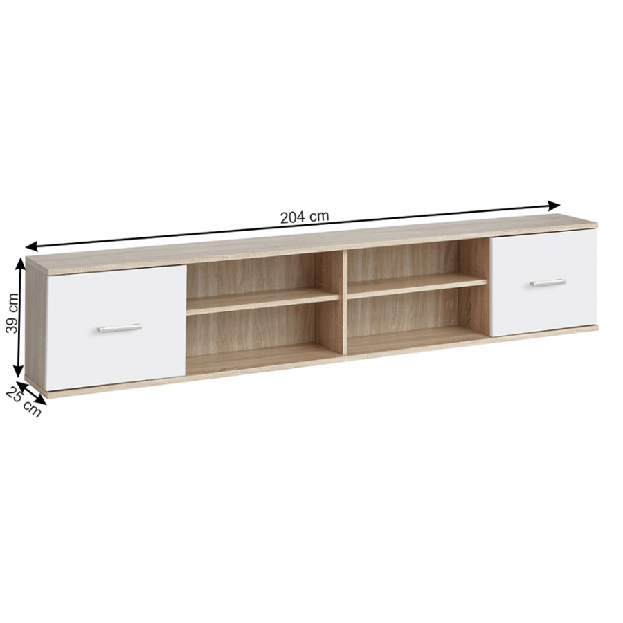 Skříňka visící, EMIO Typ 07 Materiál: DTD laminovaná, Barevné provedení: dub sonoma / bílá, Rozměry: ŠxHxV: 204x25x39 cm Tloušťka materiálu: 16 mm Dodávané v demontu.