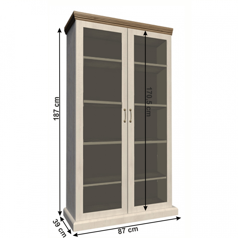 Vitrína WS, dvoudveřová s pěti policemi z elegantního sektorového systému Royal v provensálském stylu.