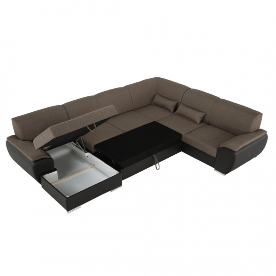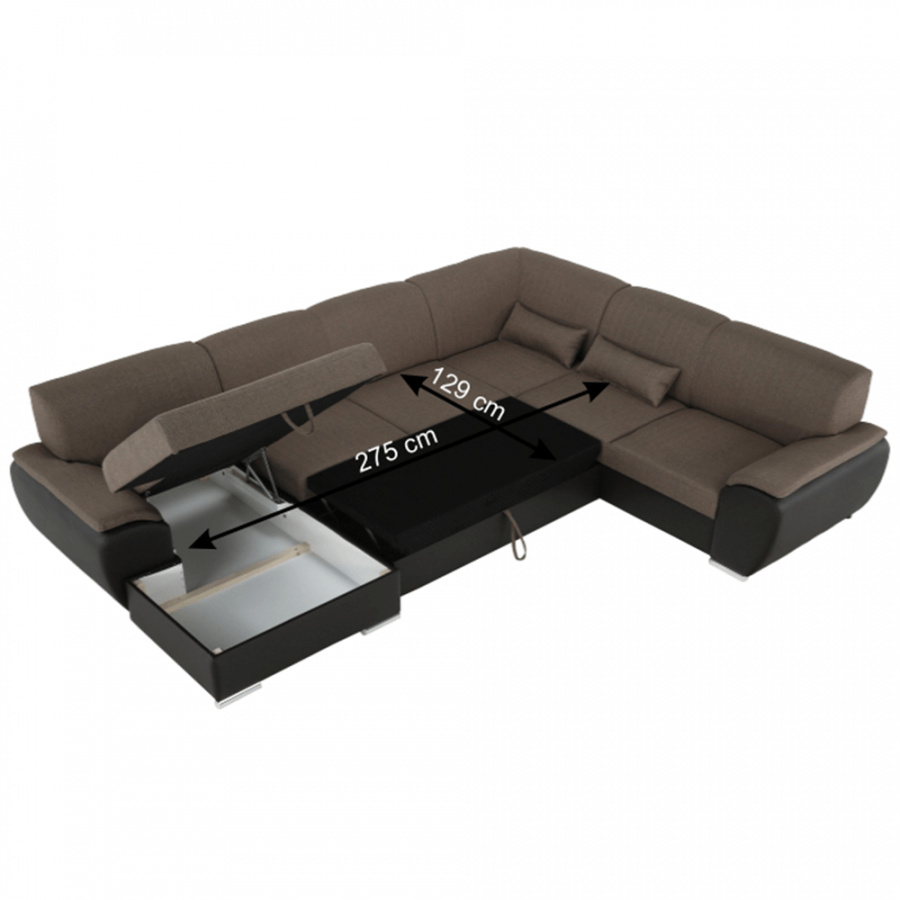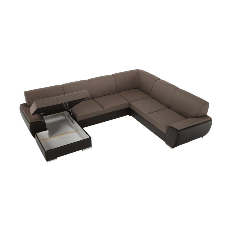 Celočalouněná rozkládací sedací souprava EMILY U s úložným prostorem.