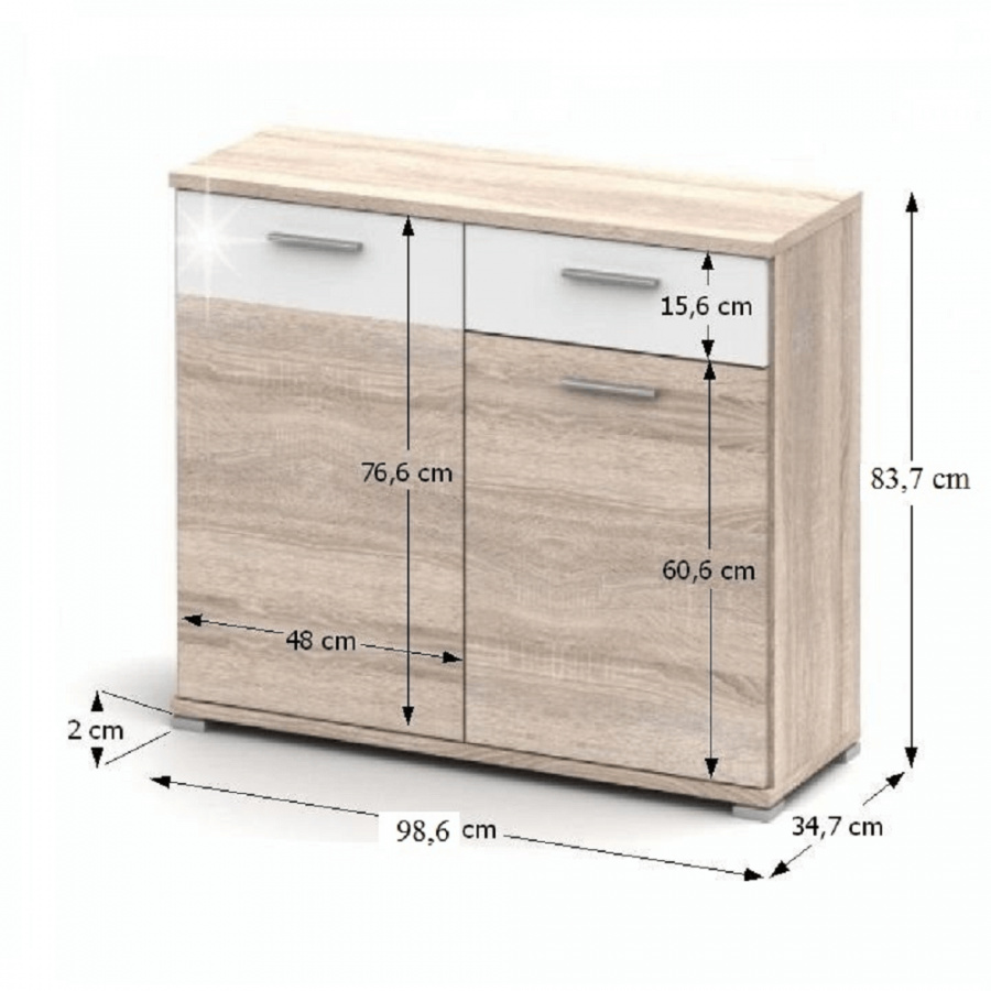 Barevné provedení: dub sonoma / bílá extra vysoký lesk