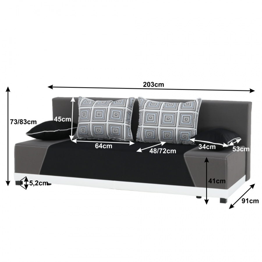 Provedení: látka Nemo 17 černá / 14 šedá / polštáře šedý vzorované