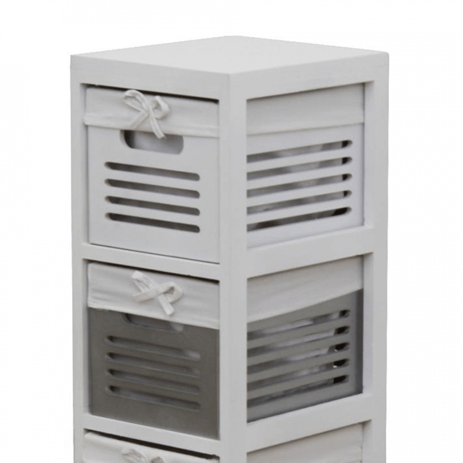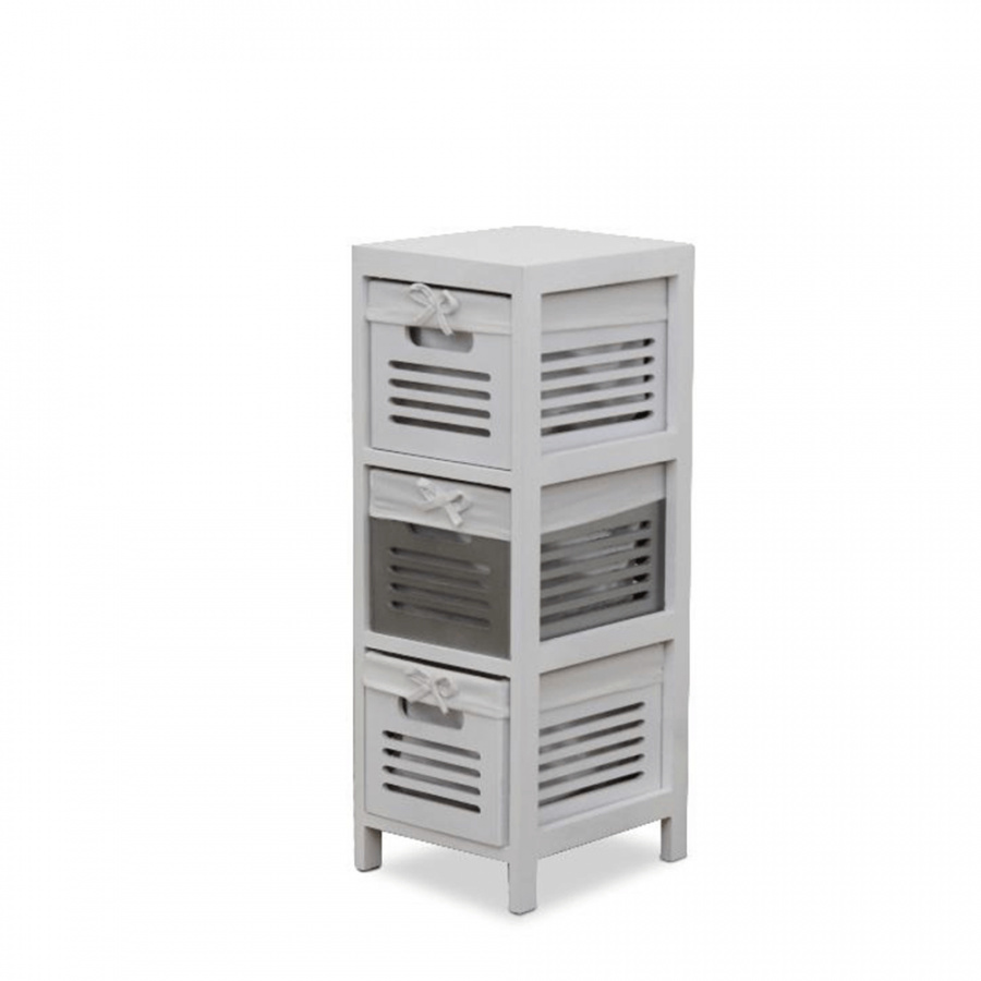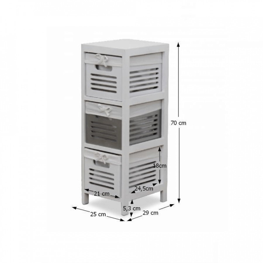 3 zásuvková bílá komoda s pevným rámem, Materiál: dřevo Barva: bílá / šedá Rozměry (ŠxHxV): 25x29x70 cm Hmotnost: 5,7 kg Dodávané v montu.