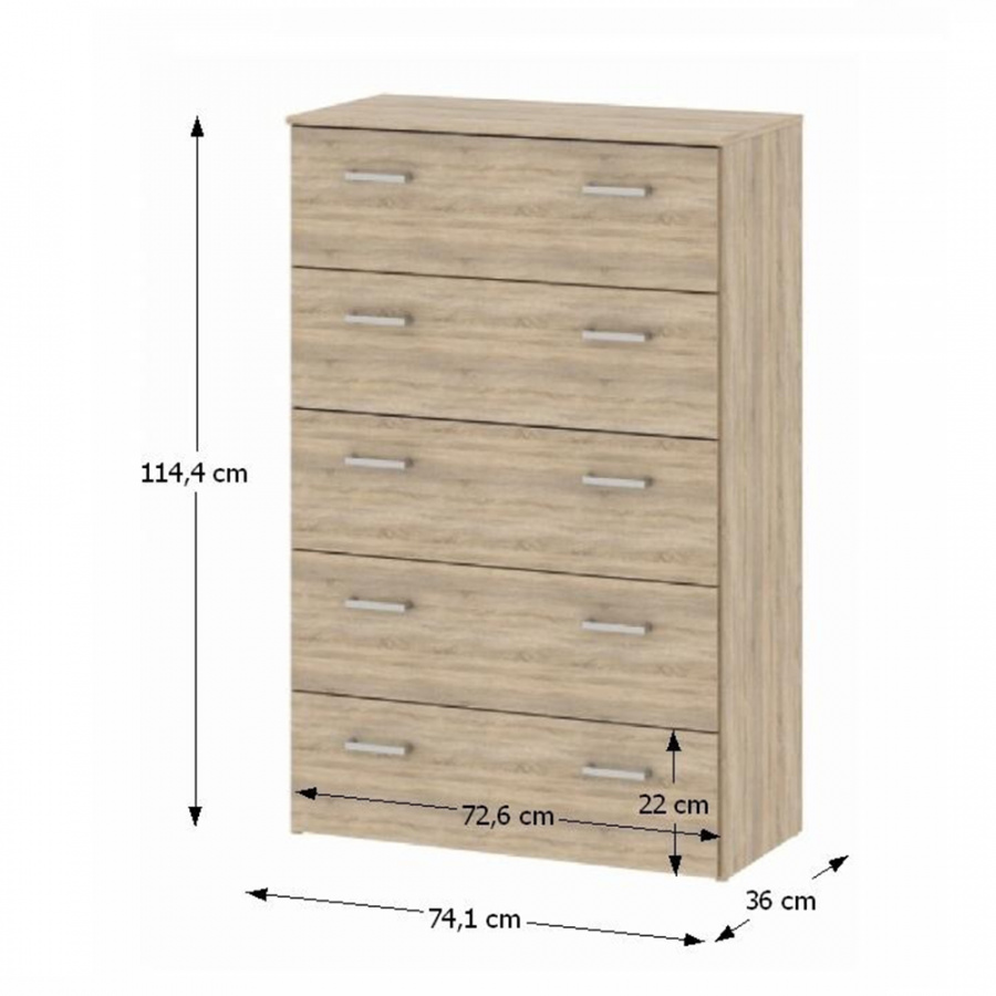 Rozměry komody (ŠxHxV): 74,1x36x114,4 cm