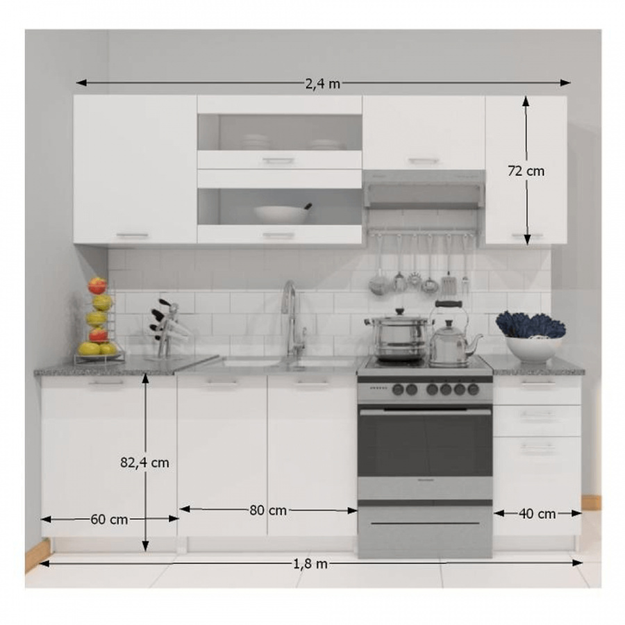 Kuchyňská sestava FABIANA Materiál: DTD laminovaná Provedení: bílá Rozměr (Šířka): 2,4 / 1,8 cm Tloušťka pracovní desky: 28 mm Včetně pracovní desky Cena pracovní desky je: 1bm: 1020 Kč. Tloušťka materiálu: 16 mm Možnost dokoupení univerzálního L / P dřezu v ceně 1.990,- Kč Dodávané v demontu