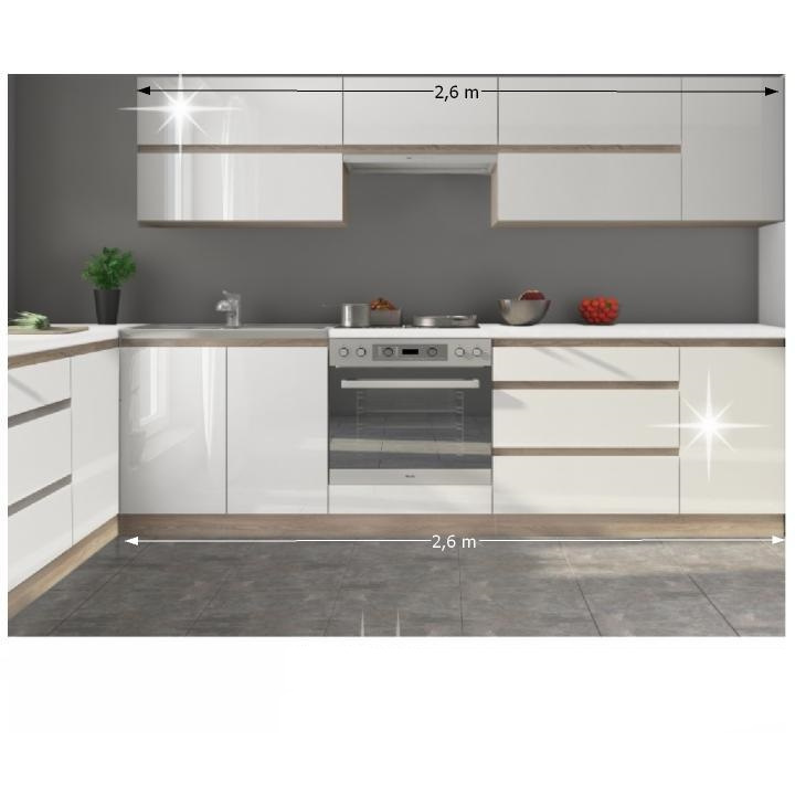 Tloušťka pracovní desky je až 38 mm. Dodávána s pracovní deskou a dolní lištou. Dodáváno v demontu. Spodní skříňky jsou dodávány s pracovní deskou (kromě skříňky D80ZL) a dolní lištou. Možnost dokoupit dřez v ceně 1.990 Kč. Možnost dokoupit pracovní desku 38 mm v ceně 1.320 Kč / bm.