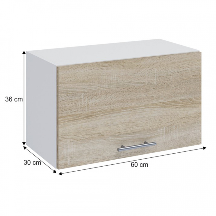 horní skříňka W - 60OK, materiál: DTD laminovaná, barevné provedení: dub sonoma / bílá, korpus: bílá, dvířka: dub sonoma. Rozměry ŠxVxH: 60x36x30 cm. Tloušťka materiálu: 16 mm Dodáváno v demontu.