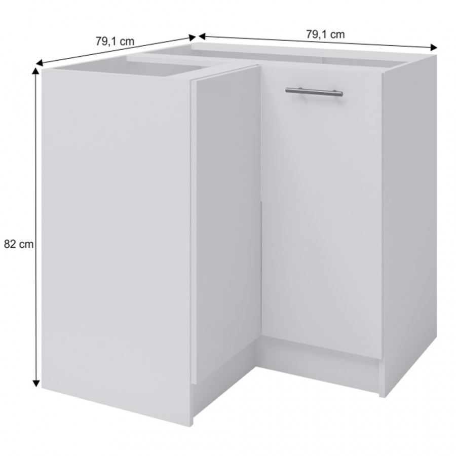 dolní rohová skříňka S - 90N, materiál: DTD laminovaná, barevné provedení: bílá, rozměry ŠxVxH: 79,1x82x79,1 cm. Dodáváno v demontu. Možnost zakoupení pracovní desky Fabiana Metalic brown šedá s tloušťkou 2,8 cm, šířkou 60 cm a cenou za bm 1020 Kč. Možnost dokoupení univerzálního L / P dřezu v ceně 1.990,- Kč