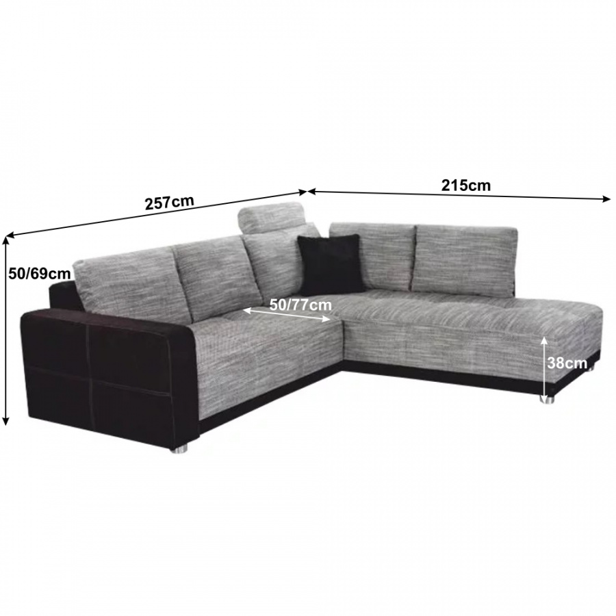 rozměry: (ŠxHxV): 257x215x50 / 69 cm