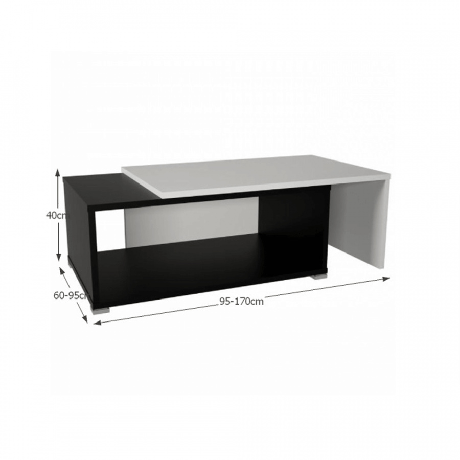 Konferenční rozkládací stolek DRON Materiálové provedení: DTD laminovaná Barevné provedení: černá / bílá Rozměry (ŠxHxV): 95x60x40 cm rozkládací Nejmenší možná šířka: 95 cm Střední šířka po rozkladu: 120 cm Největší možná šířka po rozkladu: 170 cm Tloušťka lamina: 2,2 cm Nosnost obou částí: 10 kg Kvalitní slovenský výrobek Dodávané v demontu.