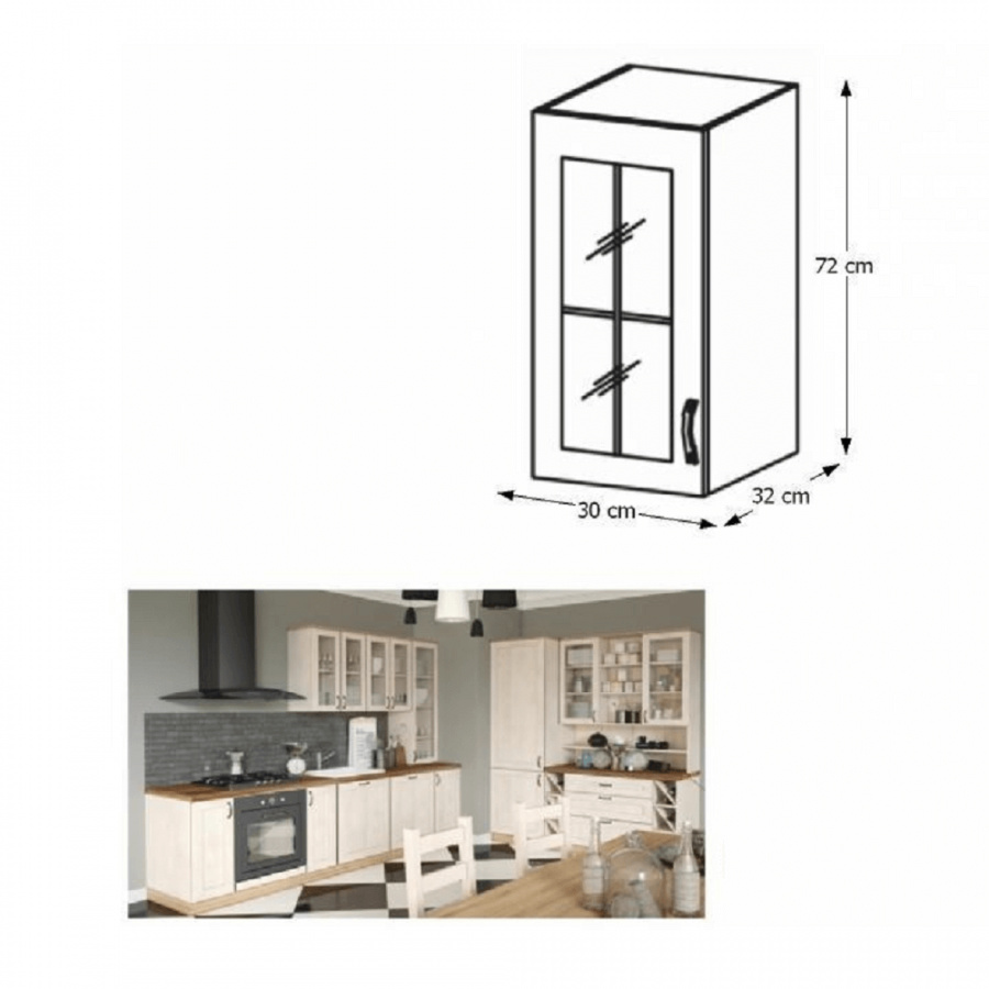 Horní skříňka s dvířky se sklem, ROYAL G30S, levá