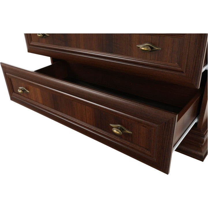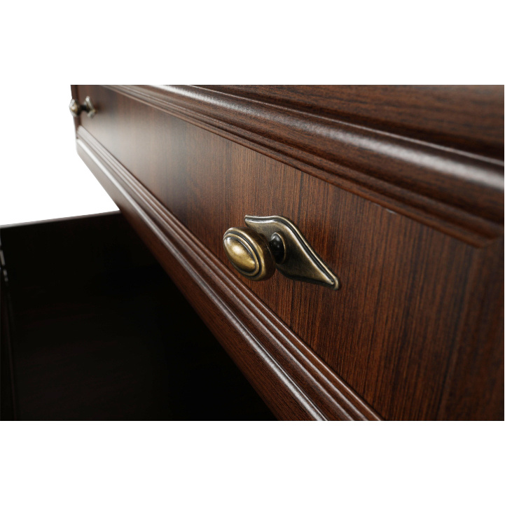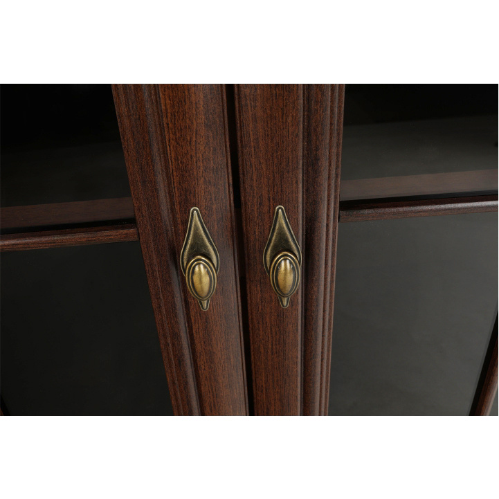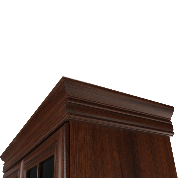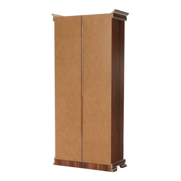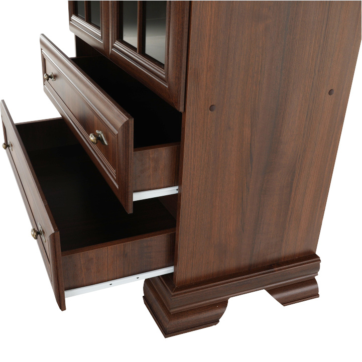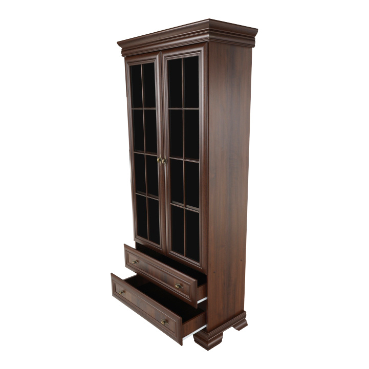 Vitrína KRW2 KORA. Barevné provedení samoa king. Materiál laminovaná DTD, MDF, kov, sklo. Rozměry (ŠxHxV): 88x40x193 cm Tloušťka materiálu korpus: 15 mm Tloušťka materiálu vrchní desky: 22 mm Tloušťka materiálu dolní desky: 22 mm Výška spodního prostoru od podlahy: 10,5 cm