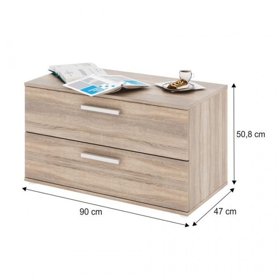 Komoda, DUNAJ TYP 8 Materiál: DTD laminovaná Provedení: dub sonoma Rozměry (ŠxHxV): 90x47x50,8 cm Tloušťka materiálu: 16 mm Kvalitní slovenský výrobek Dodávané v demontu.
