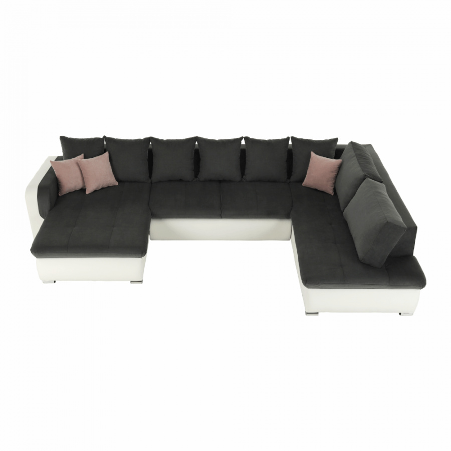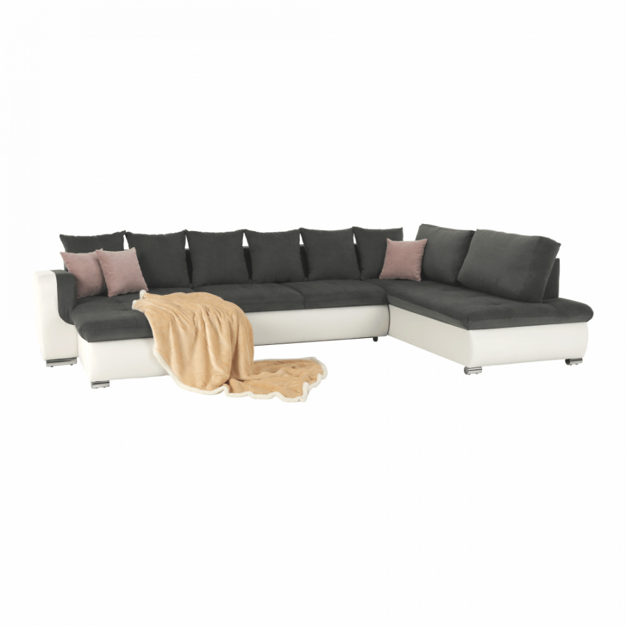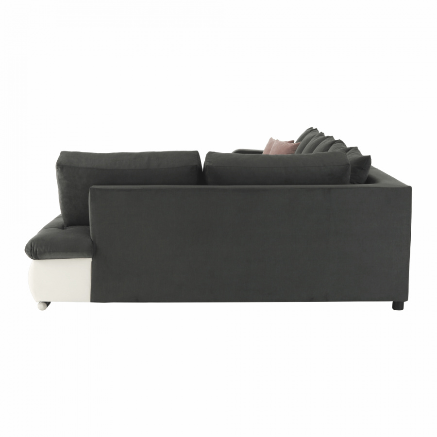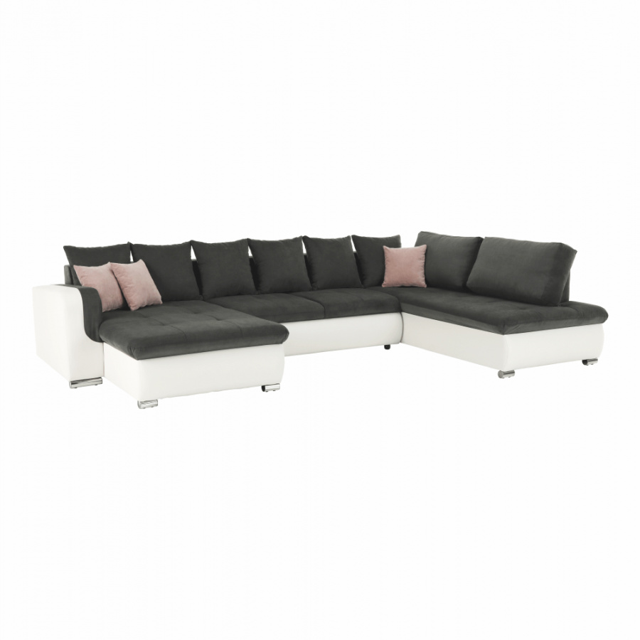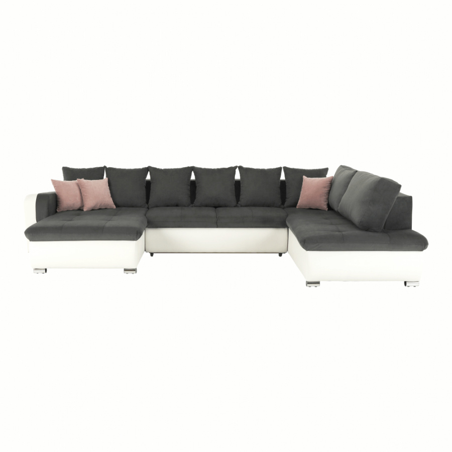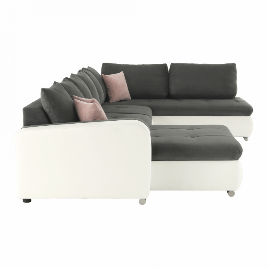 Celočalouněná rohová rozkládací sedací souprava KASTOR v pravém provedení. Materiál ekokůže 120 bílá / látka matrix 17 šedá / 20 pudrová růžová.