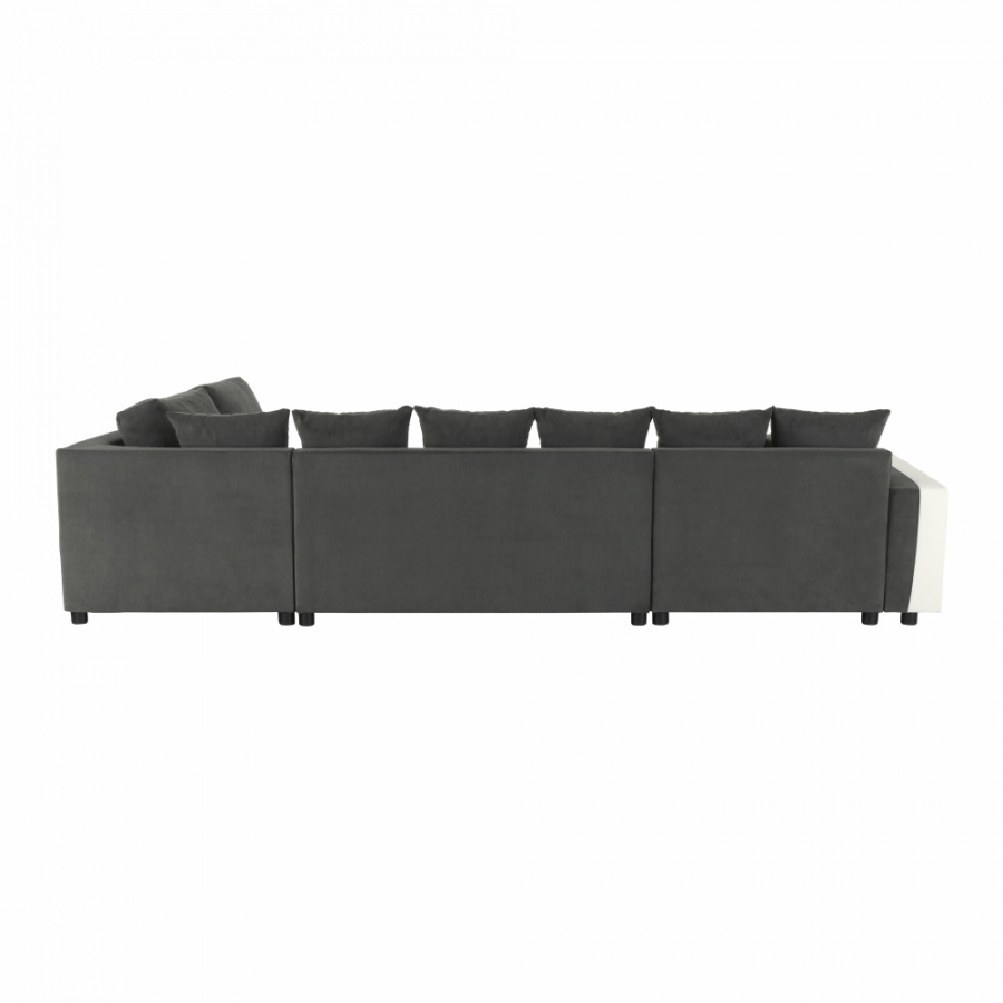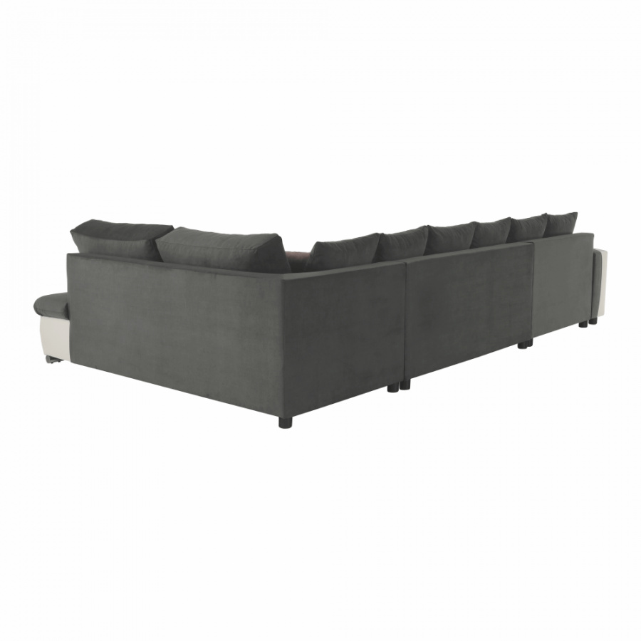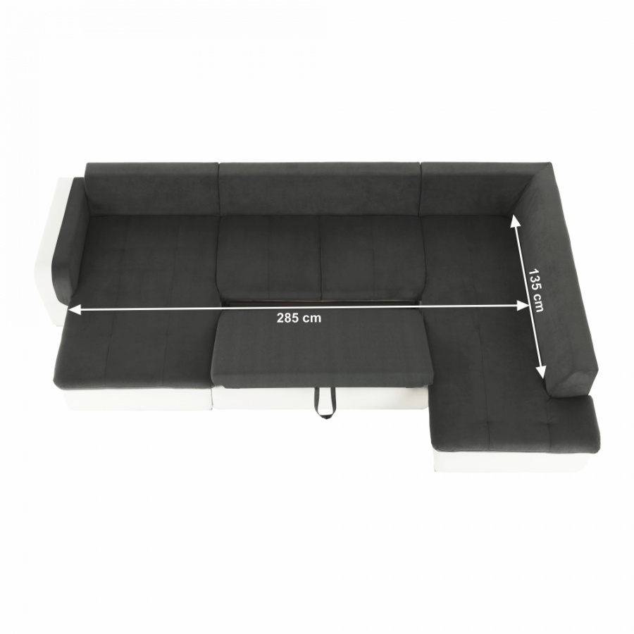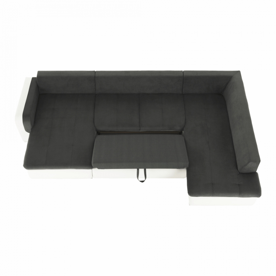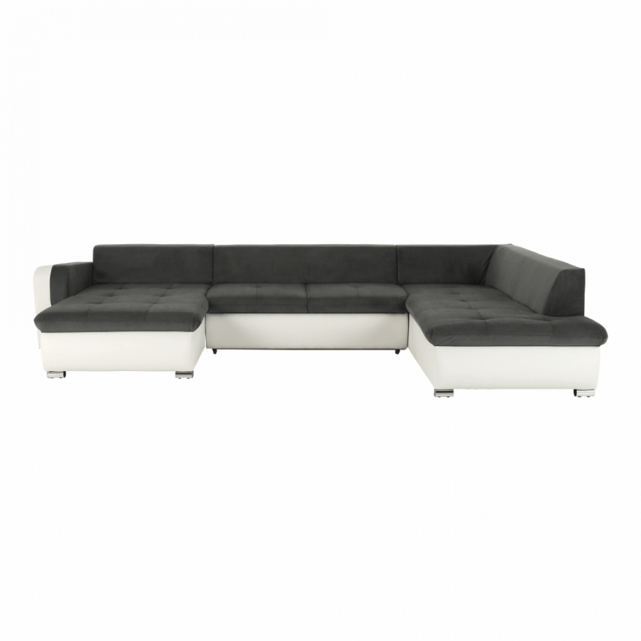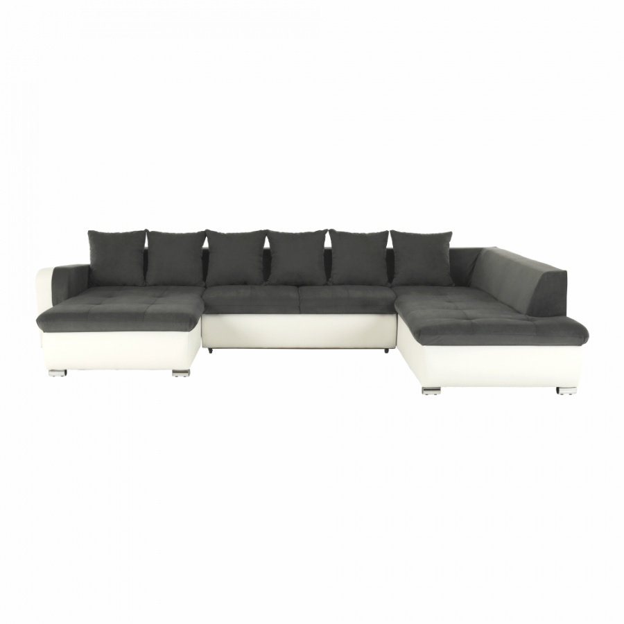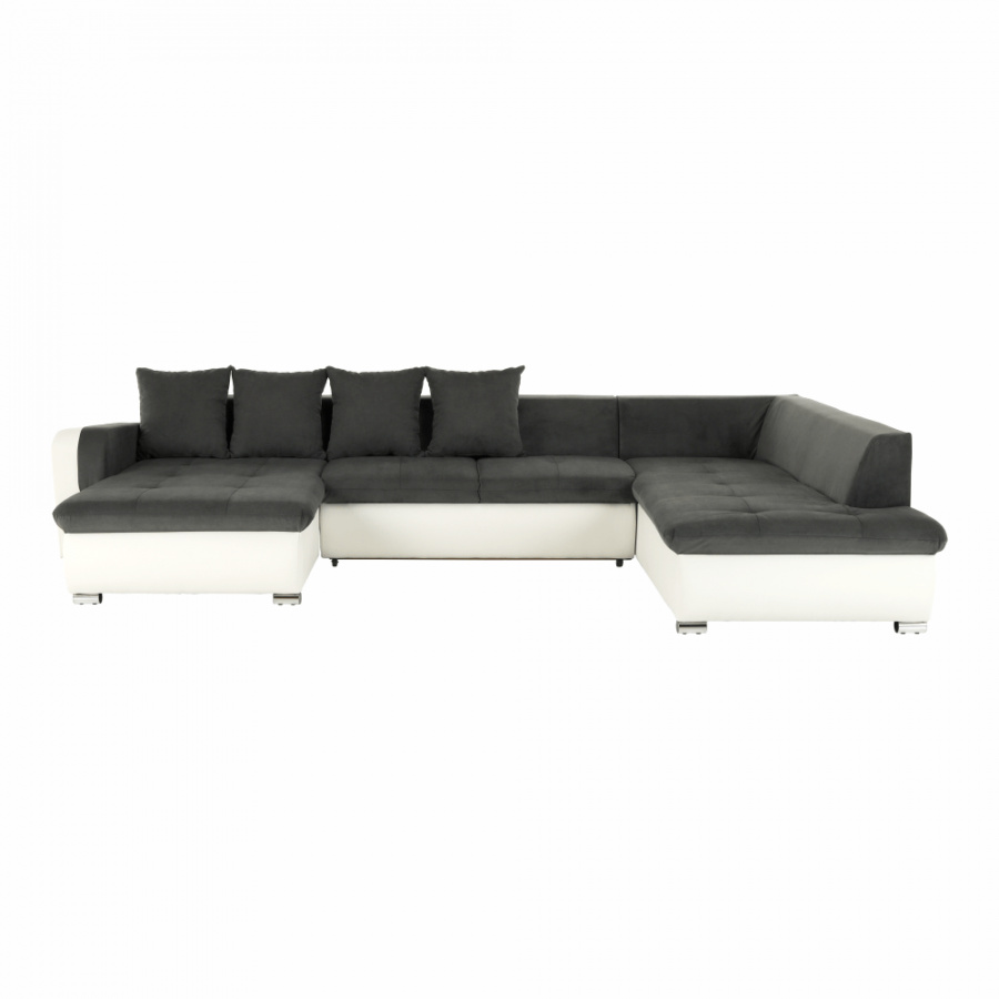 Celočalouněná rohová rozkládací sedací souprava KASTOR v pravém provedení. Materiál ekokůže 120 bílá / látka matrix 17 šedá / 20 pudrová růžová.