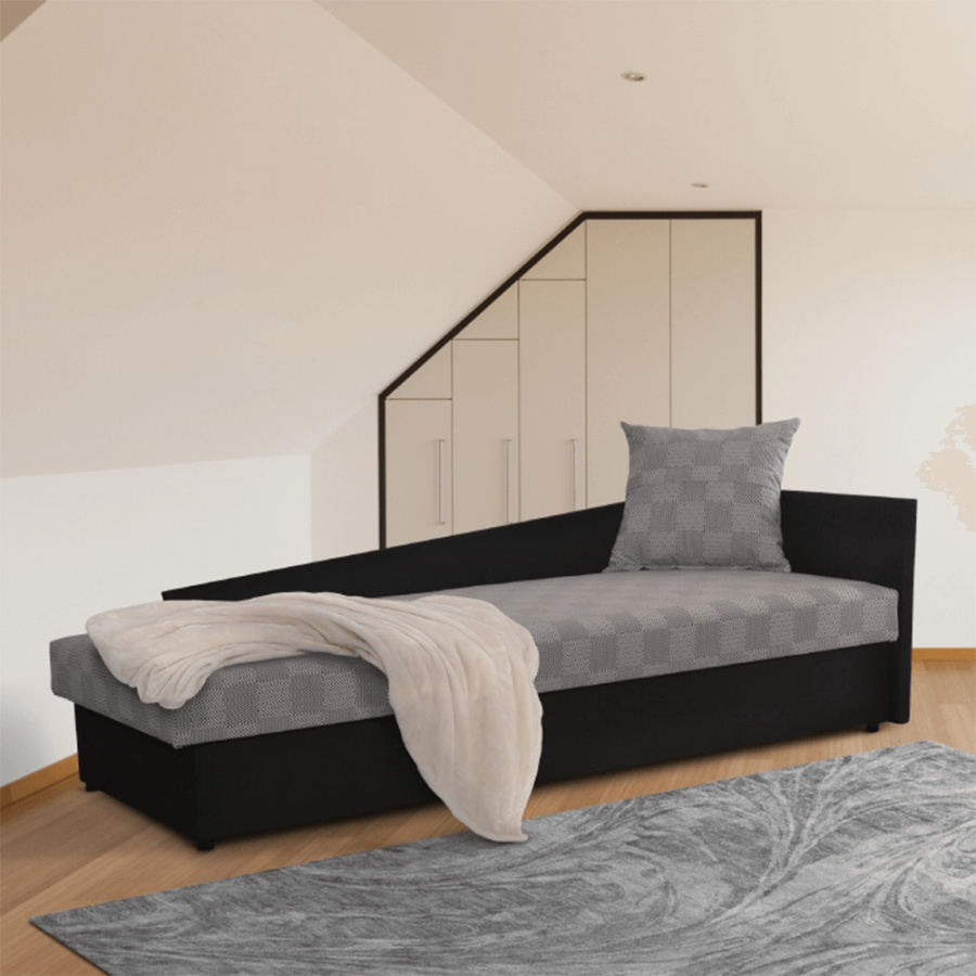 černá / látka vzor M35, rozměry: ŠxVxH: 205x63x84 cm, plocha na spaní: ŠxD: 80x200 cm, výška x hloubka sezení: 40x80 cm.