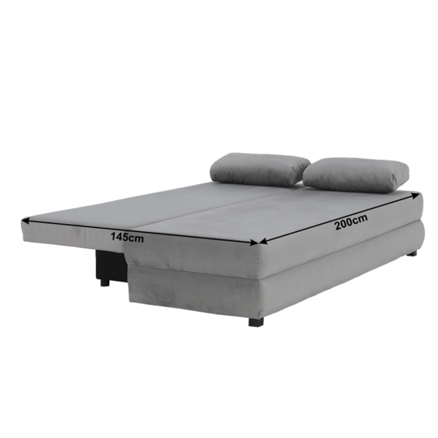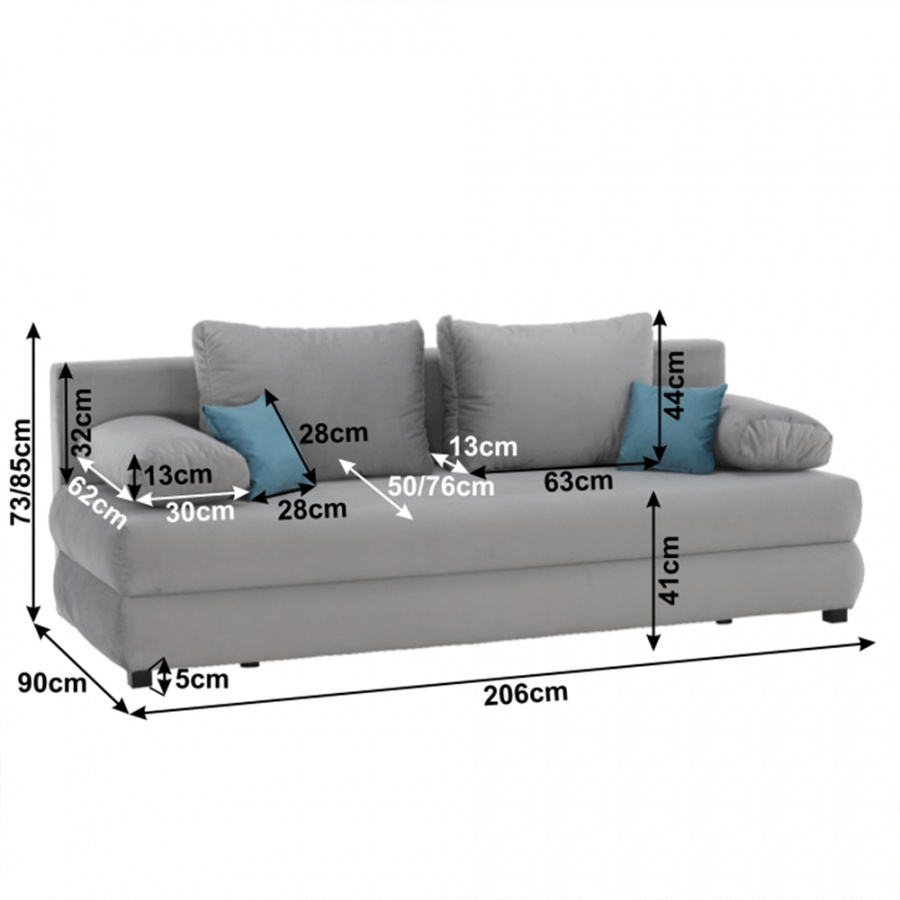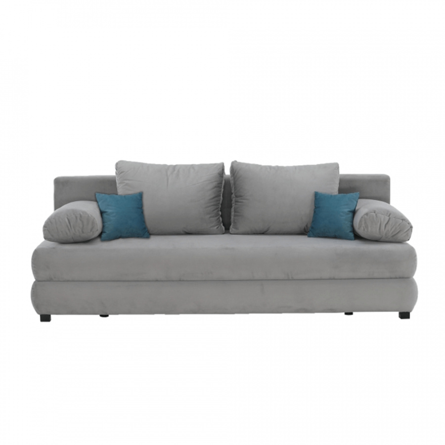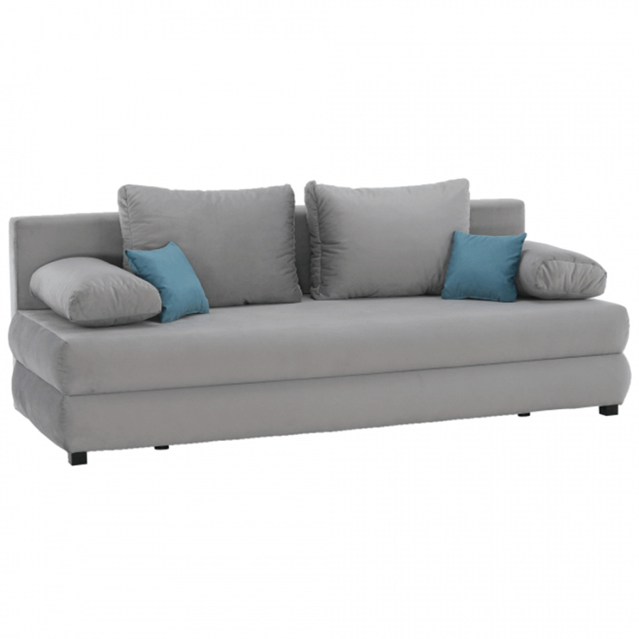 Rozkládací pohovka Clive s úložným prostorem v barevném provedení šedá látka Aria 15 / tyrkysová.