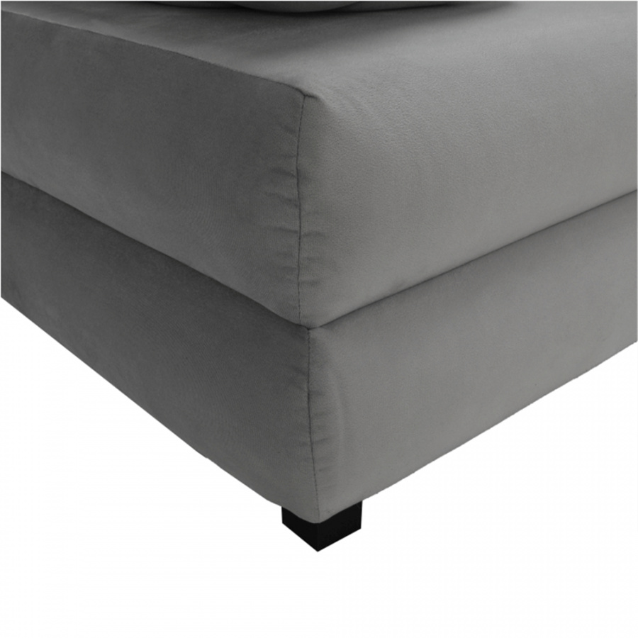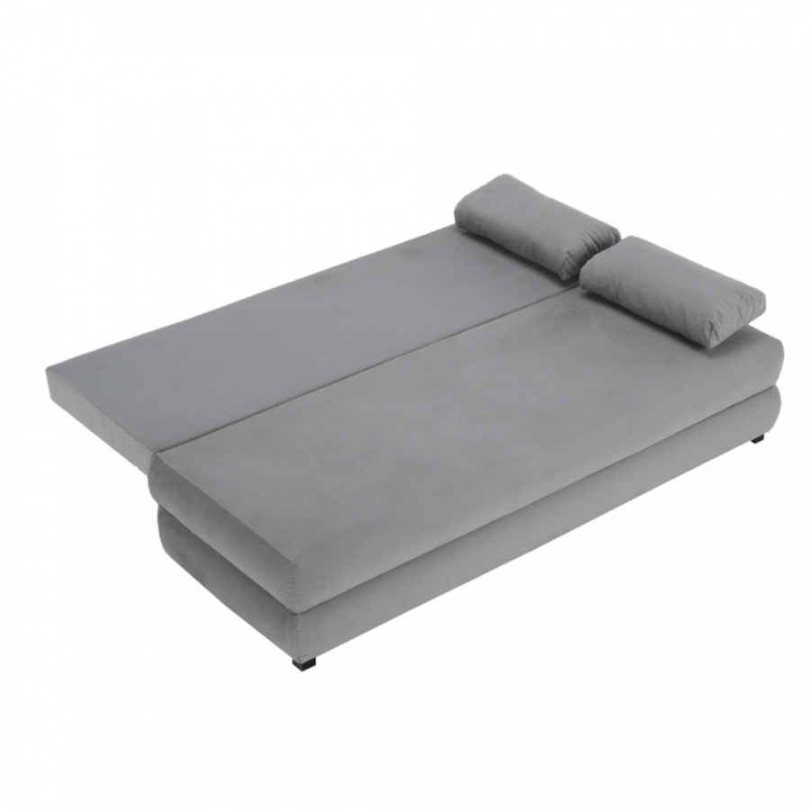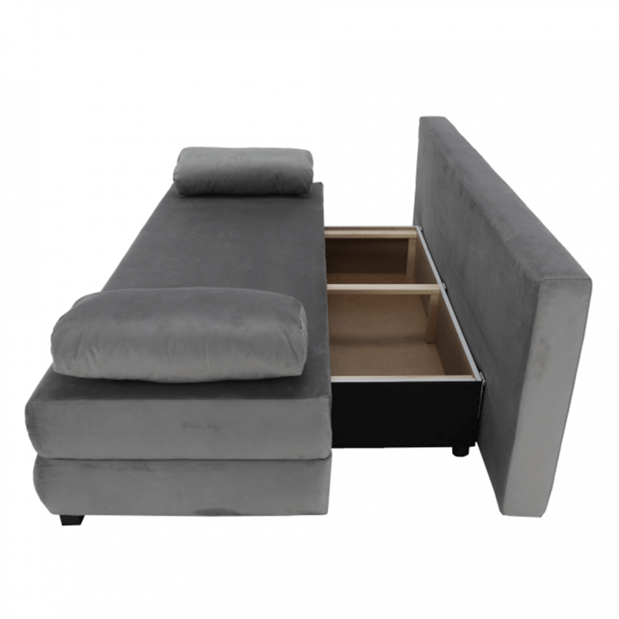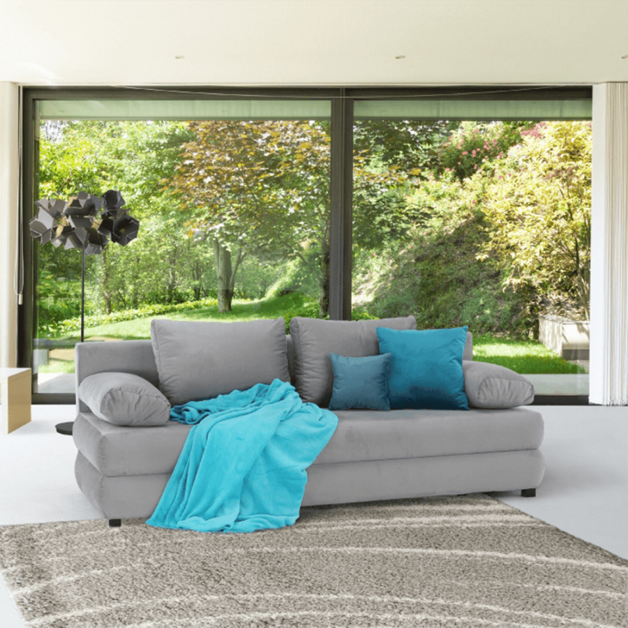 Rozkládací pohovka Clive s úložným prostorem v barevném provedení šedá látka Aria 15 / tyrkysová.