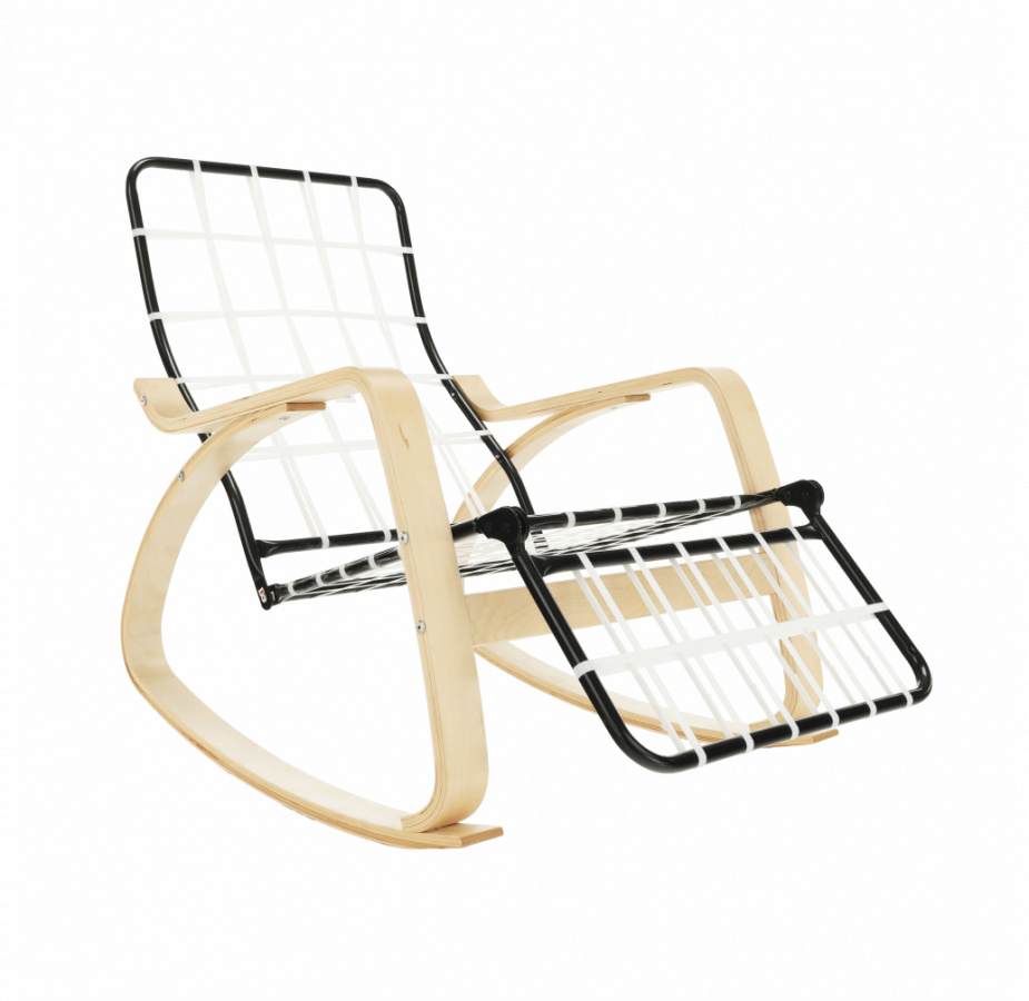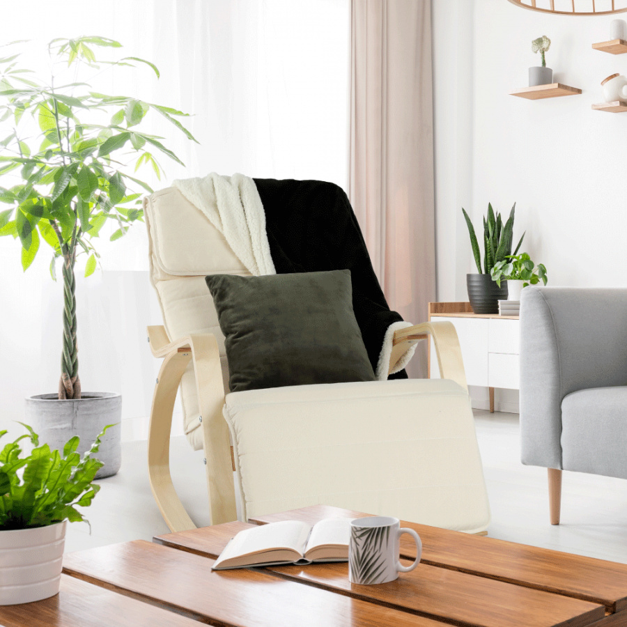 Houpací křeslo, březové dřevo, látka krémová, SIVERT