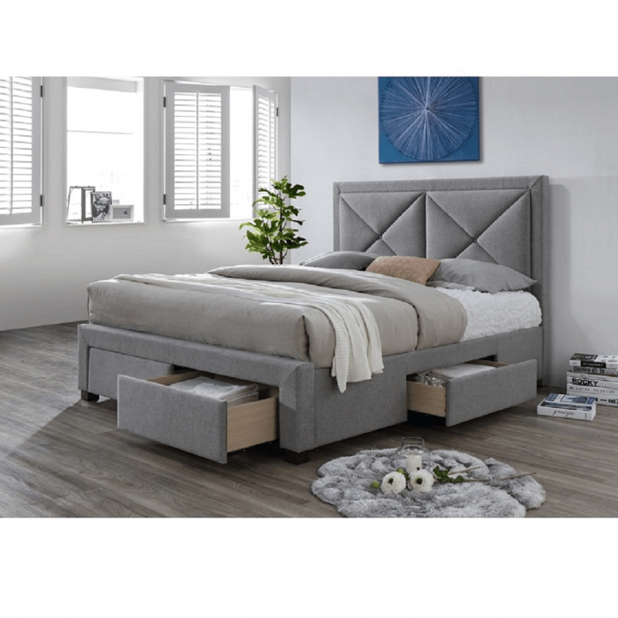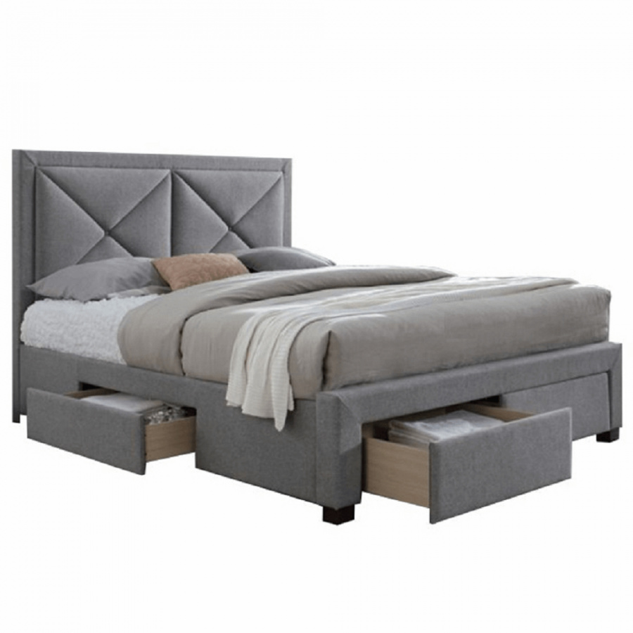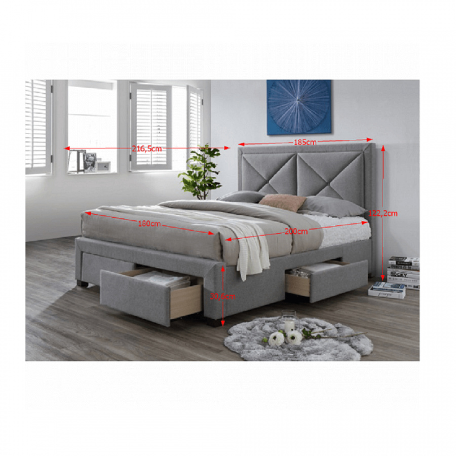 Luxusní moderní postel s vysokým prošívaným čelem a praktickým úložným prostorem - 4 zásuvky, součástí postele je i rolovaný rošt, Materiál: látka / dřevo Barva: šedá melír / wenge Rozměry (ŠxHxV): 185x216,5x122,2 cm, plocha spaní (ŠxH): 180x200 cm K posteli doporučujeme dokoupení matrace v rozměru 180x200 cm z naší nabídky. Dodávané v demontu.