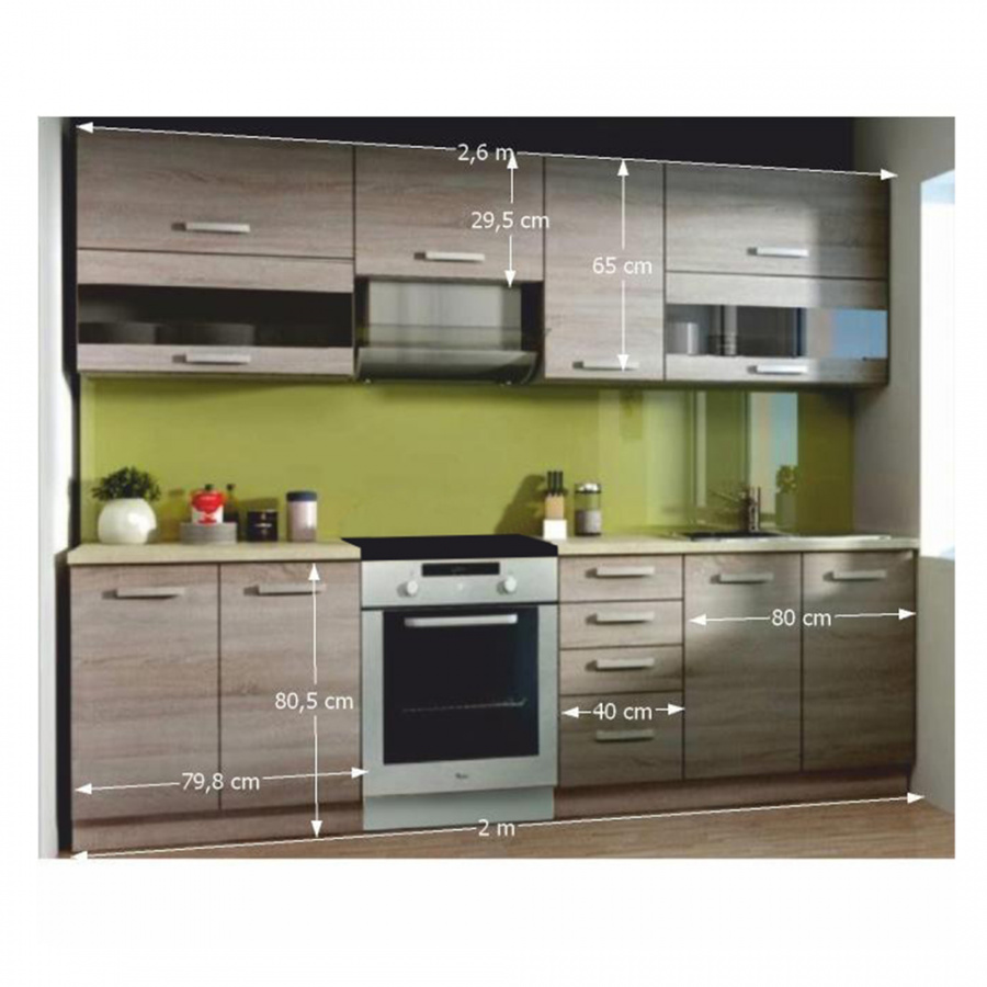 Horní rozměr s digestorovou skříňkou je 2,6 m,
