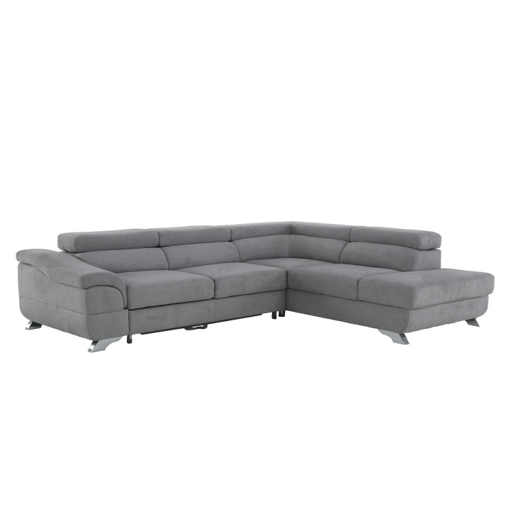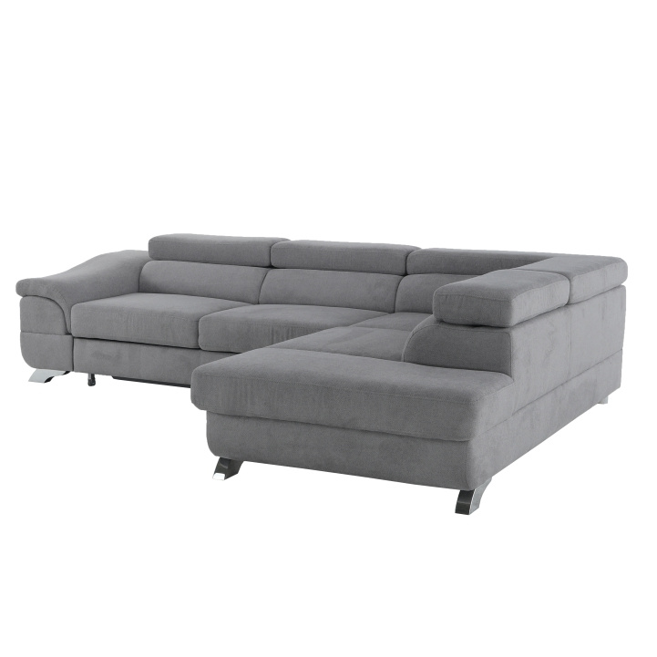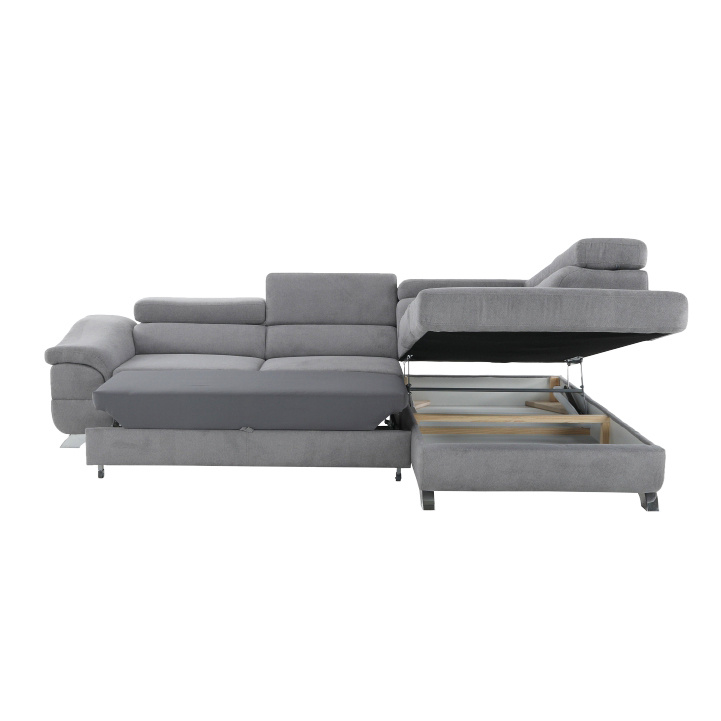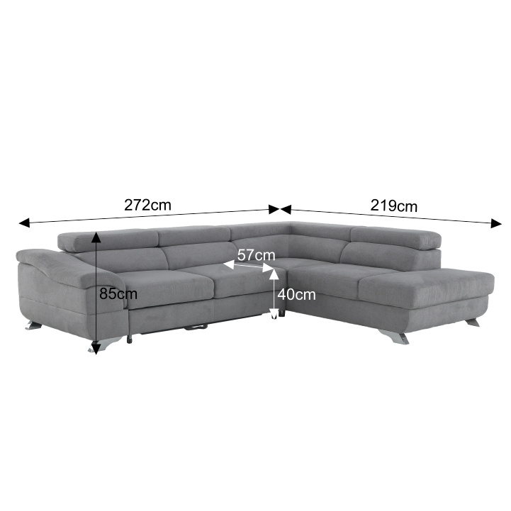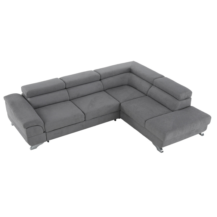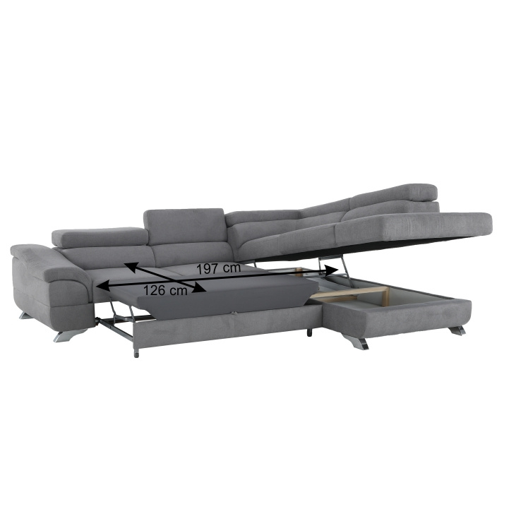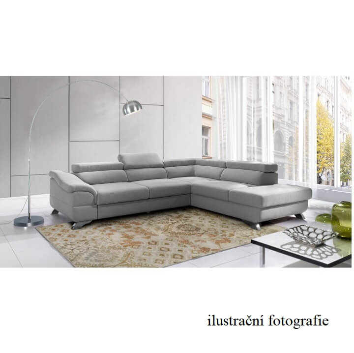 celočalouněná rohová rozkládací sedací souprava s úložným prostorem a polohovatelným záhlavím, které zajišťuje komfortní opření zad a hlavy, dekorativní prošití sedáků, P provedení, materiál: ekokůže bílá, rozměry: ŠxVxH: 275x71 / 85x225 cm, plocha na spaní: ŠxD: 125x200 cm.Výška spodního prostoru od podlahy: 8 cm