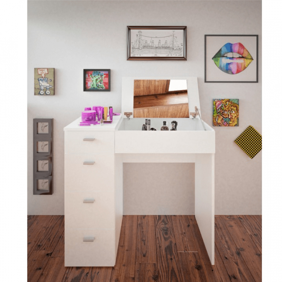 Toaletní stolek BELINA Barva: bílá Materiál: DTD laminovaná Rozměry (ŠxHxV): 90x42x83 cm Tloušťka materiálu korpus: 16 mm Dodávané v demontu.