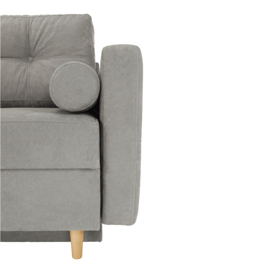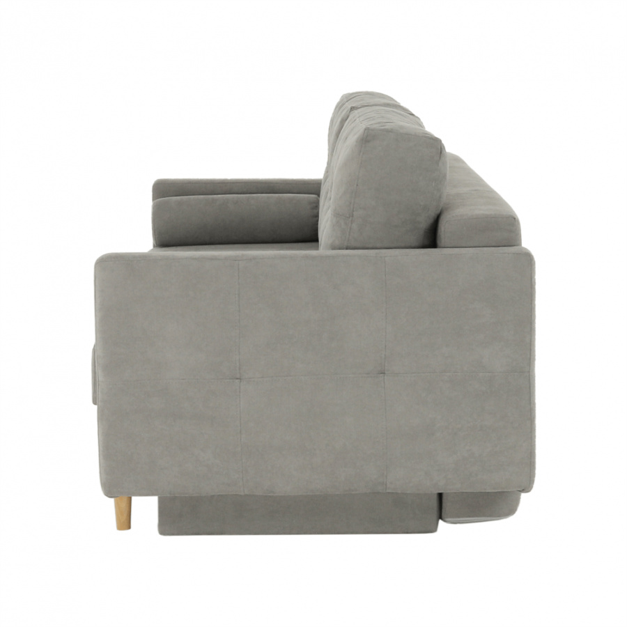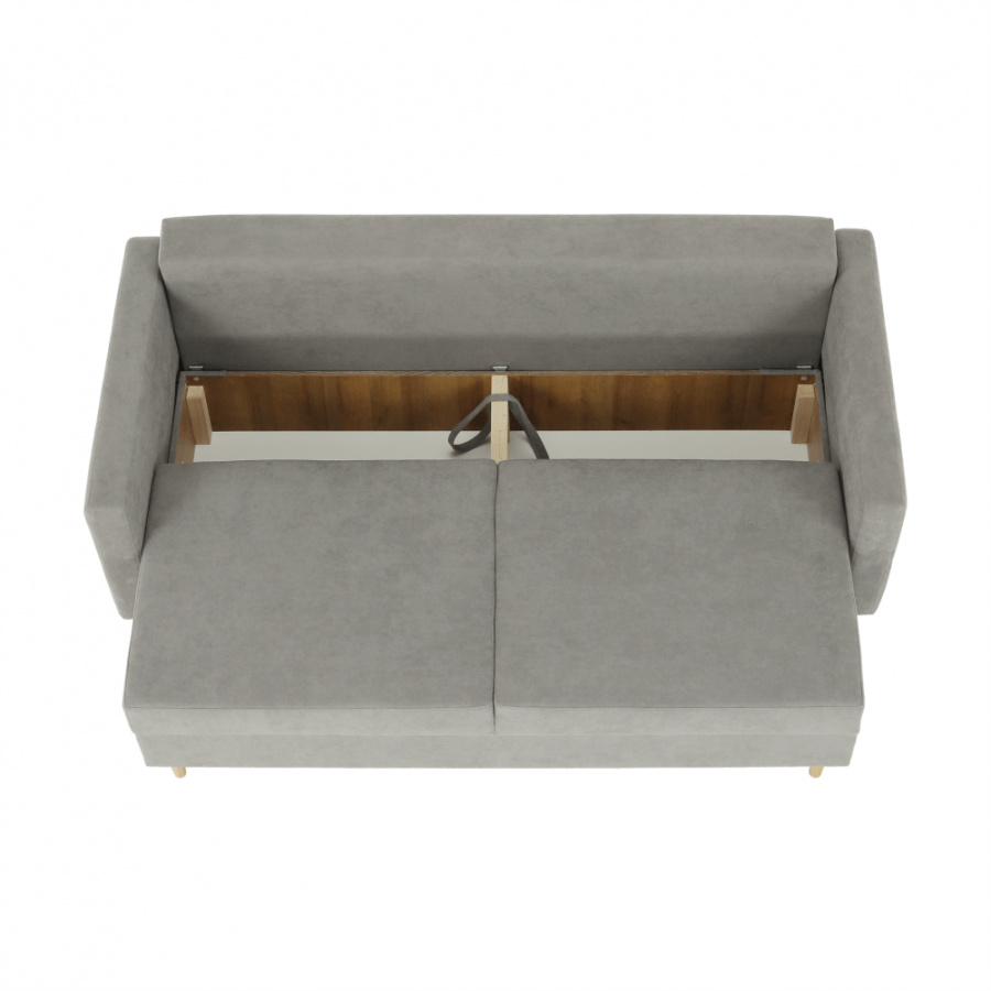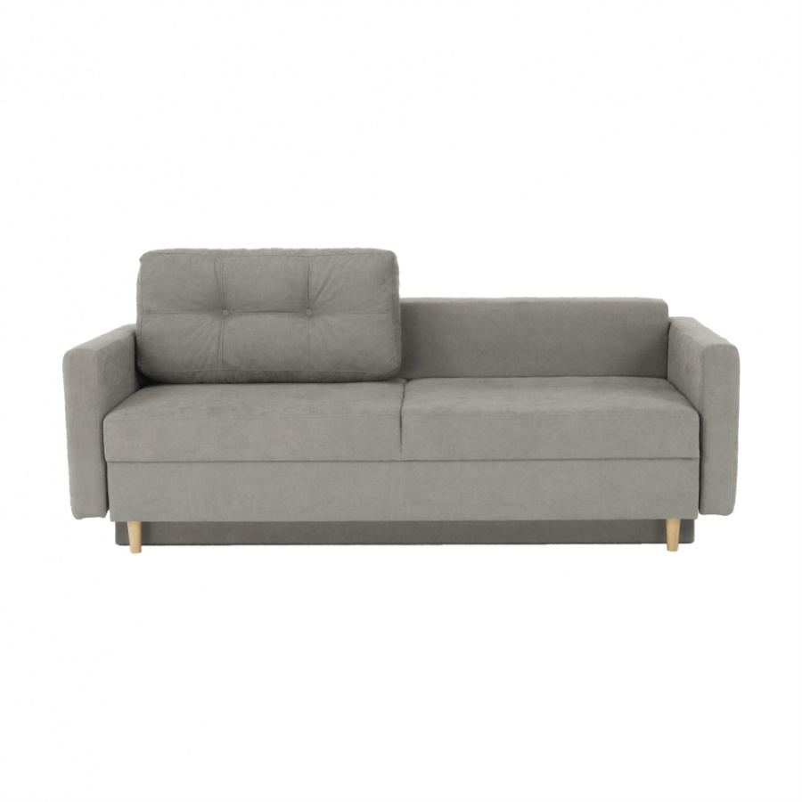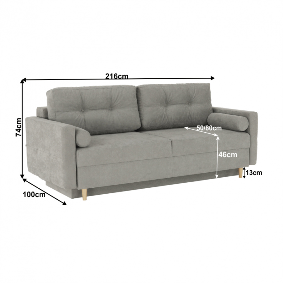 Moderní rozkládací pohovka s úložným prostorem Barva: šedá Materiál: Látka ALFA Rozměry (ŠxHxV): 216x100x74 cm, rozměry na spaní (ŠxD): 155x190 cm Výška sedu: 46 cm Hloubka sedu: 50/80 cm Výška nožiček: 13 cm Dodávané v demontu.