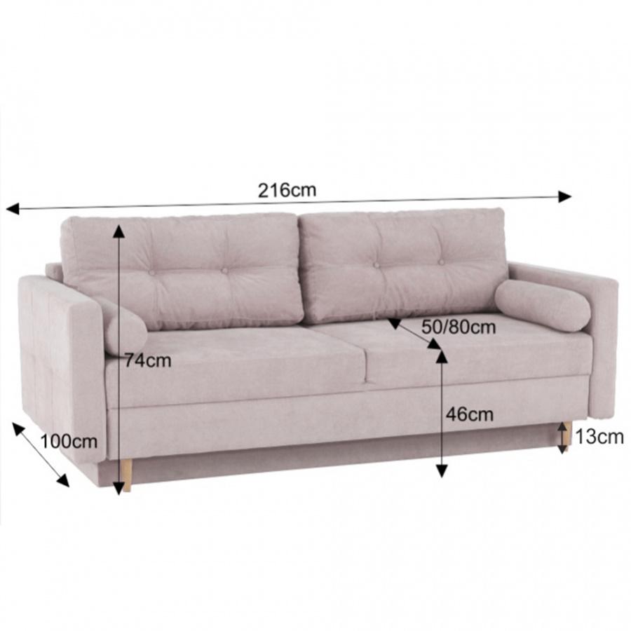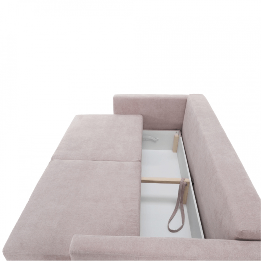 Moderní rozkládací pohovka s úložným prostorem Barva: starorůžová Materiál: Látka ALFA Rozměry (ŠxHxV): 216x100x74 cm, rozměry na spaní (ŠxD): 155x190 cm Výška sedu: 46 cm Hloubka sedu: 50/80 cm Výška nožiček: 13 cm Dodávané v demontu.