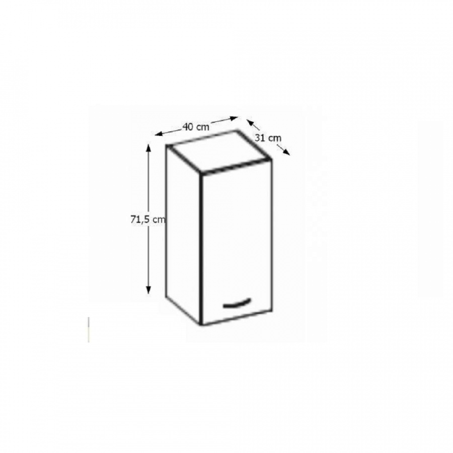 Horní skříňka, materiál: DTD laminovaná, provedení: krém vysoký lesk, rozměry ŠxVxH: 40x71,5x31 cm. Dodáváno v demontu. tloušťka pracovní desky 28 mm, horní i dolní rozměr 2,6 m, dolní skříňky ZZ jsou dodávány včetně pracovní desky a dolní lišty, dřezová skříňka bez pracovní desky. Sektorové skrinky sú dodávané bez pracovnej dosky vrátane spodnej lišty. Možnosť dokúpiť PD travertyn v cene 1.150 Kč/1m. Možnosť dokúpiť univerzálny Ľ/P drez v cene 1.990 Kč.