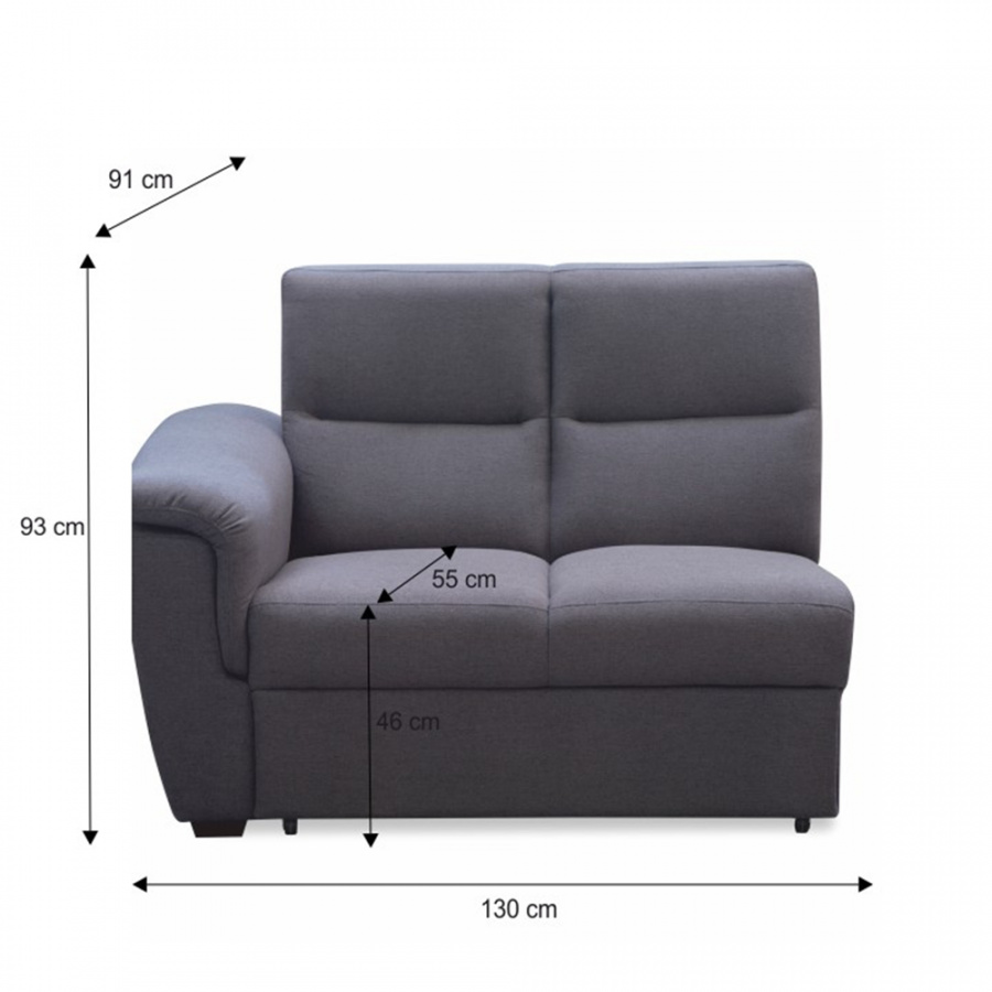 2 1B celočalouněné BORN Materiál: látka Barva: šedá Levé provedení. Rozměry (ŠxHxV): 130x91x93 cm Výška spodního prostoru od podlahy: 3 cm Dodávané v demontu. Upozorňujeme, že při objednávkách na nábytek v jiném barevném provedení, jak máme běžně skladem, neumíme zaručit doručení do Vánoc. Totéž platí i při nábytku označeném na objednávku. Doba dodání 14-17 týdnů. Cena takto složené sedačky v jiné barvě závisí na počtu jednotlivých dílů, které ji tvoří. Doporučujeme prověřit si konečnou cenu na e-mail adrese nakup@tempo-kondela.sk.