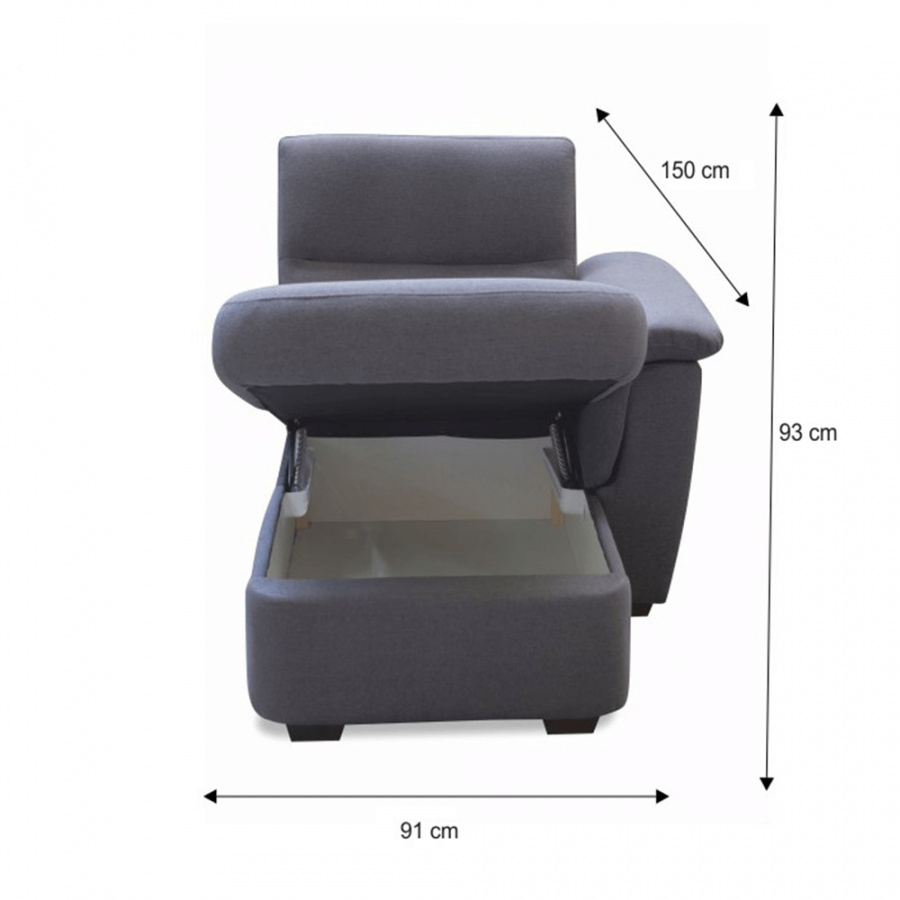 Otoman s úložným prostorem, šedá látka, na objednávku, pravá, BORN OTT 1B ZP