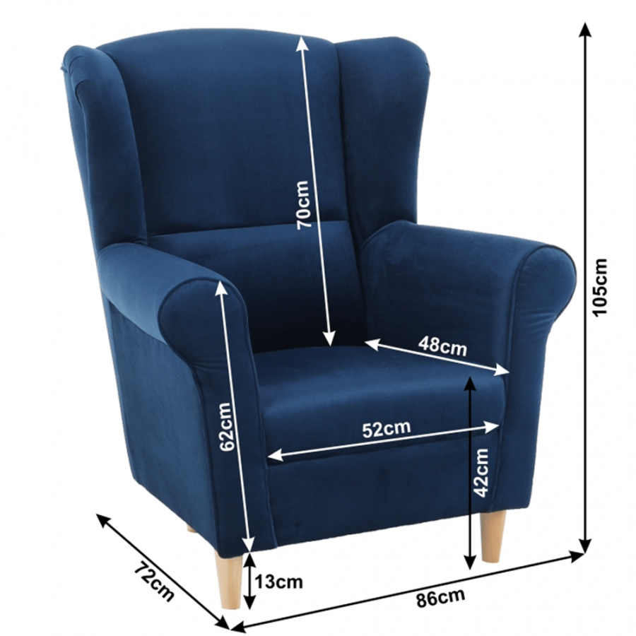 Křeslo-ušák CHARLOT v barevném provedení látky riviera modrá 81. Dřevěné nožičky. Rozměry (ŠxHxV): 86x72x105 cm Výška zádové opěrky: 70 cm Výška područky: 62 cm Dodávané v demontu. Možnosť objednania v 6 farebných prevedeniach látky alova v cene 5.980 Kč alebo látky Soro v cene 6.750 Kč. Upozorňujeme, že při objednávkách na nábytek v jiném barevném provedení, jak máme běžně skladem, neumíme zaručit doručení do Vánoc. Totéž platí i při nábytku označeném na objednávku. Doba dodání 14-17 týdnů.