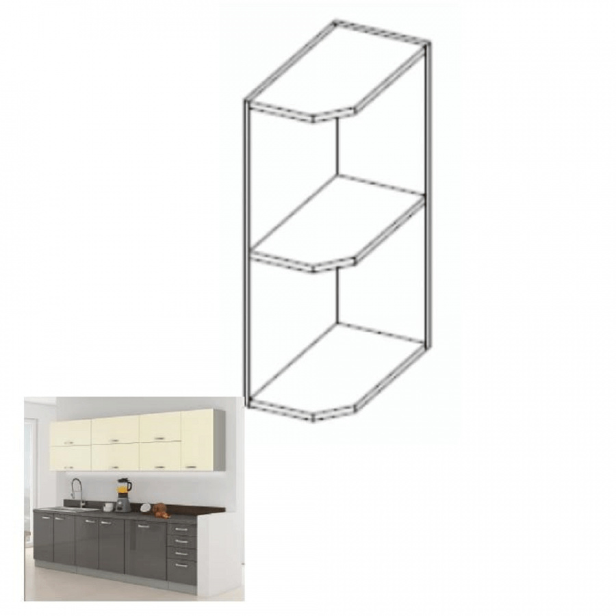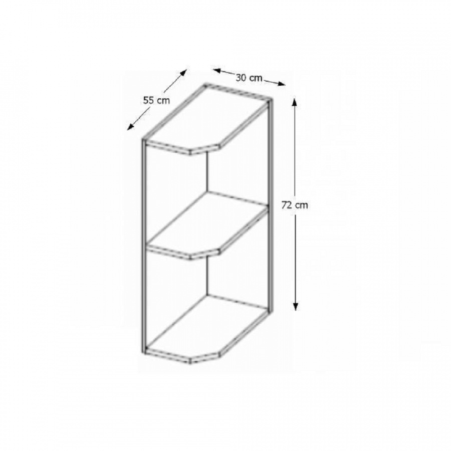 Dolní rohová police, provedení: šedá, materiál: DTD laminovaná, rozměry ŠxVxH: 30x82x55 cm.Bez pracovní desky.