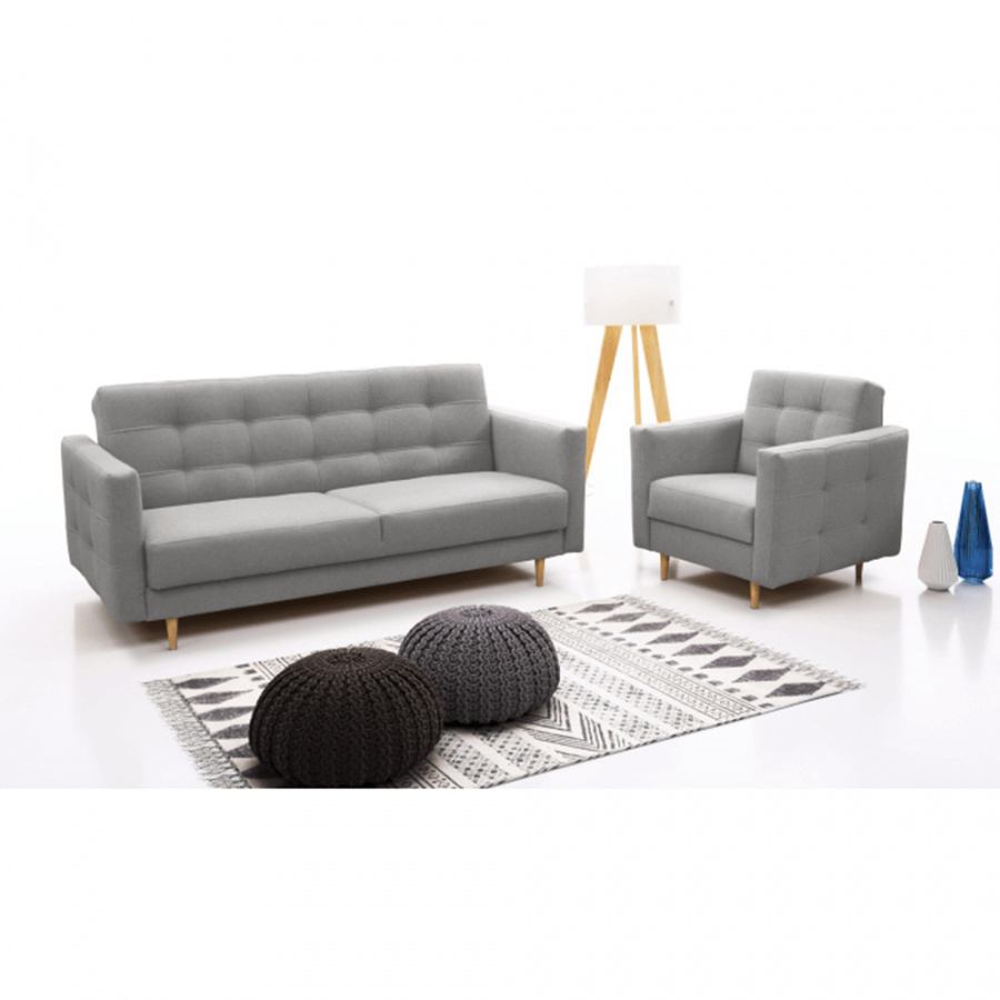 Celočalouněná sestava, rozkladaci 3-sed s úložným prostorem a dvě křesla, AMEDIA