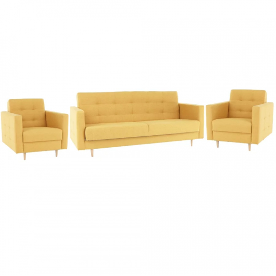 Celočalouněná sestava, rozkladaci 3-sed s úložným prostorem a dvě křesla, AMEDIA