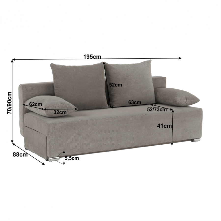 Rozměry: (ŠxHxV): 195x88x70 / 90 cm