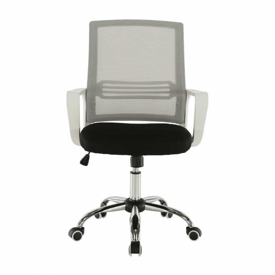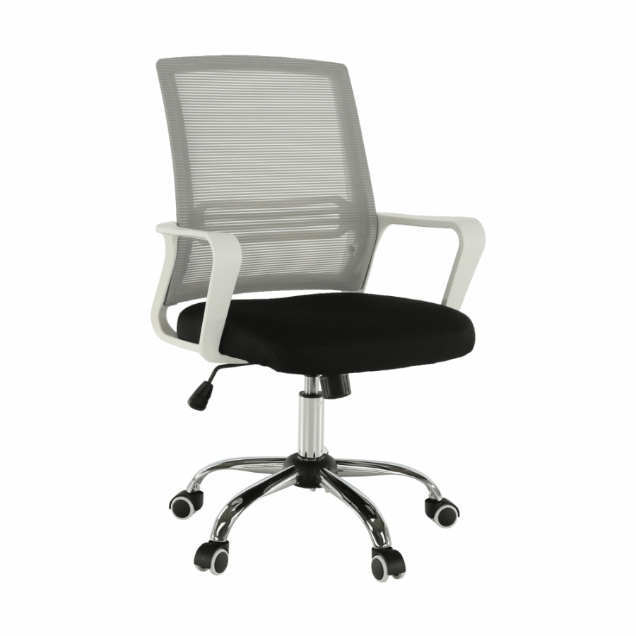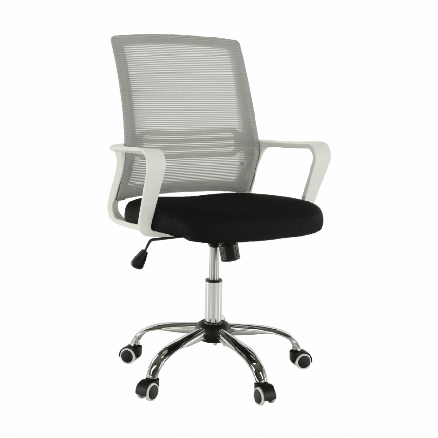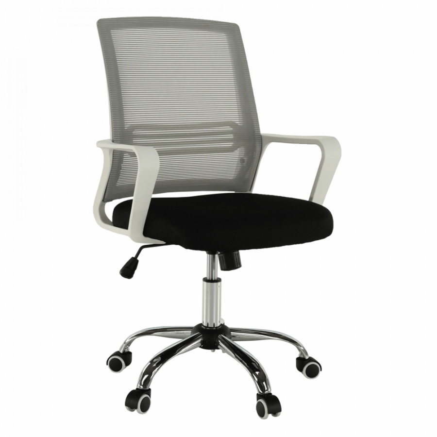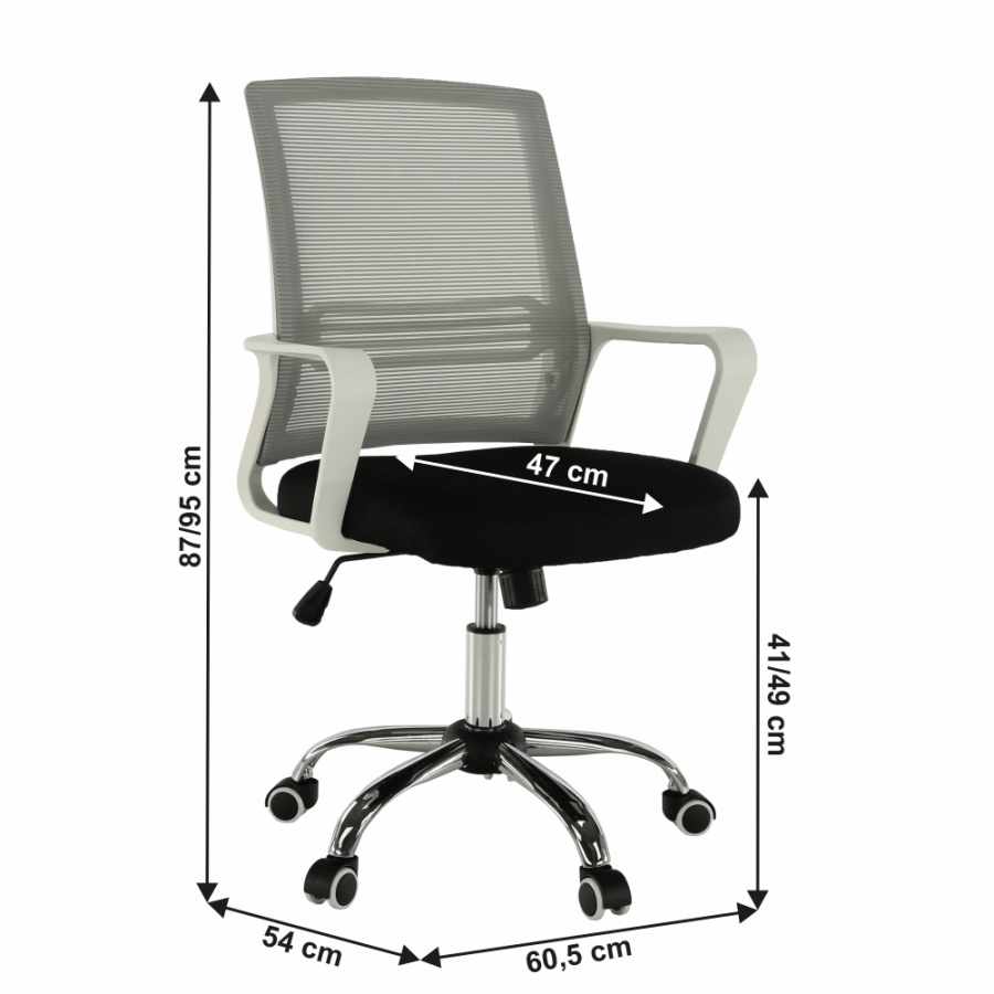 Kancelárske kreslo, materiál: sieťovina/plast/kov farba: sivá/čierna/biela/chróm pogumované kolieska vhodné na plávajúce aj drevené podlahy, rozmery (ŠxHxV): 60,5x54x87-95 cm, výška sedu: 41-49 cm. Nosnosť: 100 kg Opěrka zad (ŠxV): 44x47 cm Sedadlo (ŠxH): 46x46 cm Dodávané v demonte