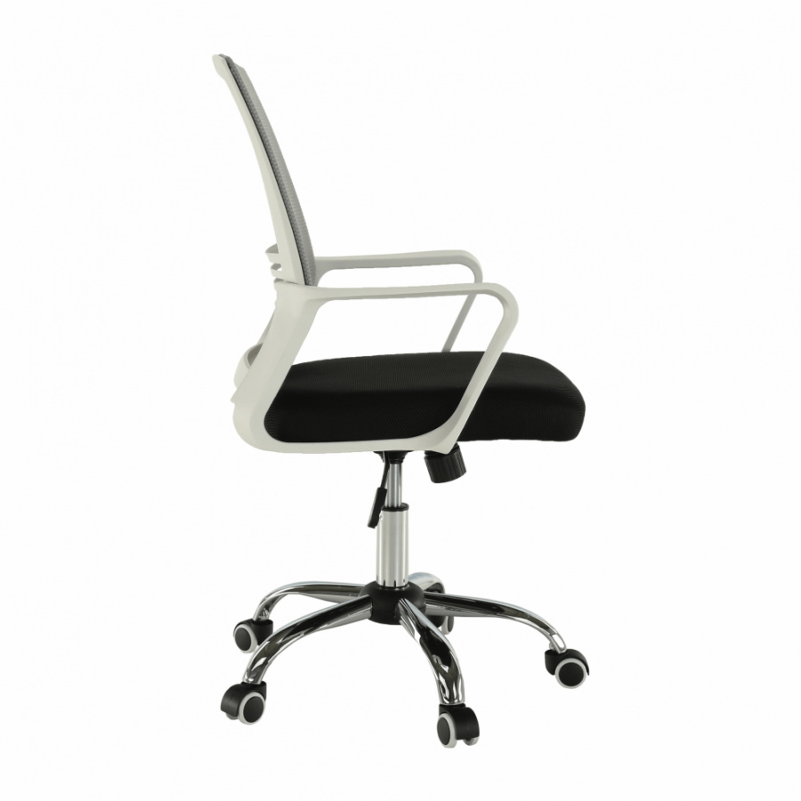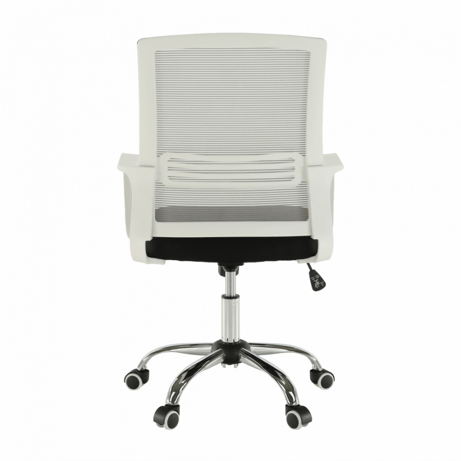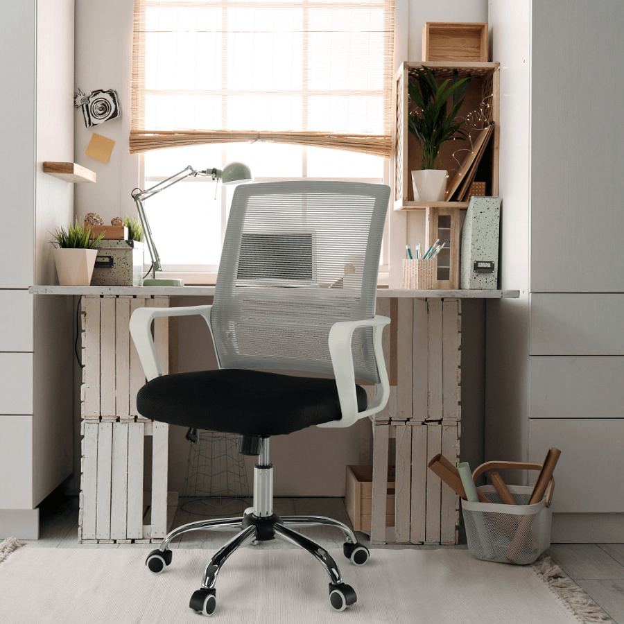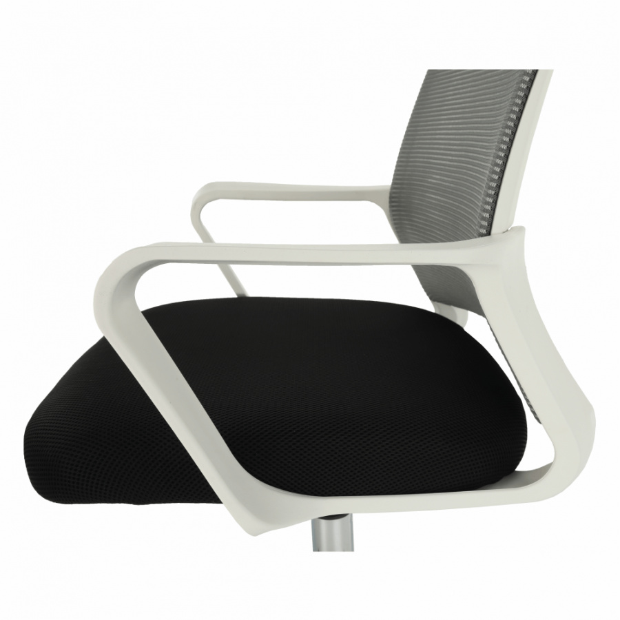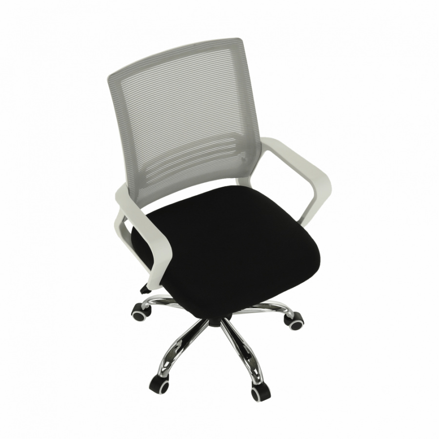 Kancelárske kreslo, materiál: sieťovina/plast/kov farba: sivá/čierna/biela/chróm pogumované kolieska vhodné na plávajúce aj drevené podlahy, rozmery (ŠxHxV): 60,5x54x87-95 cm, výška sedu: 41-49 cm. Nosnosť: 100 kg Opěrka zad (ŠxV): 44x47 cm Sedadlo (ŠxH): 46x46 cm Dodávané v demonte