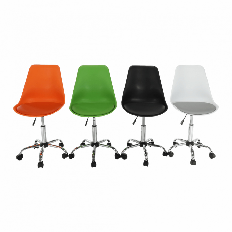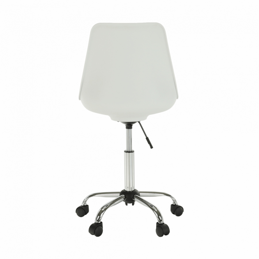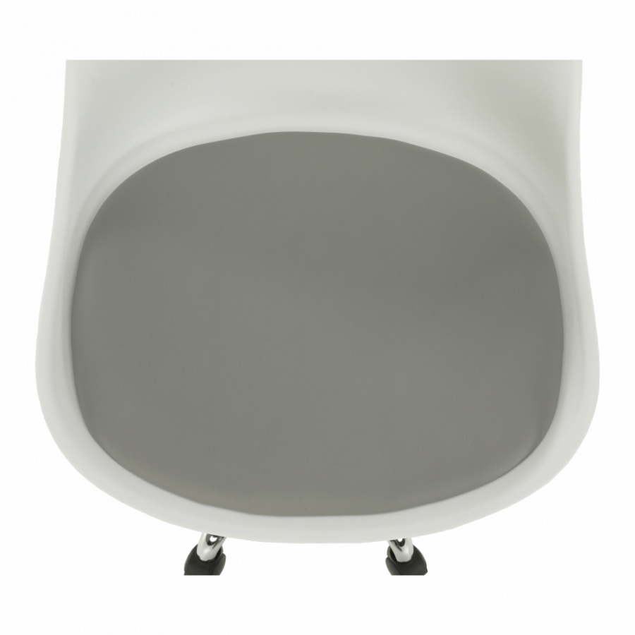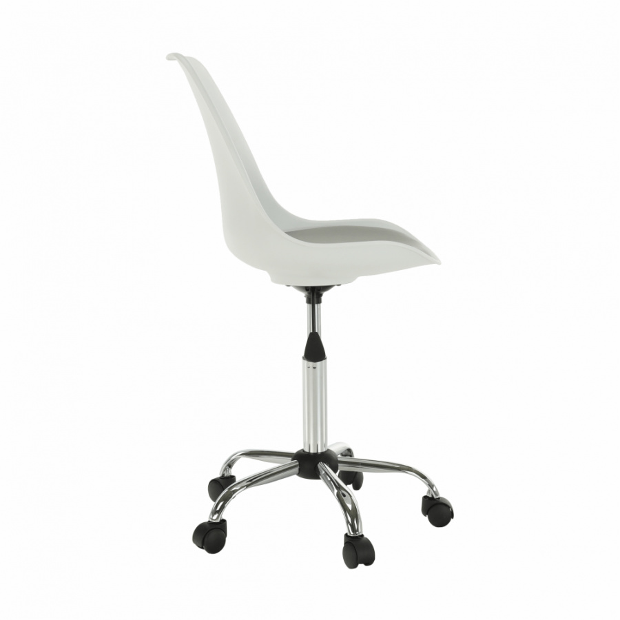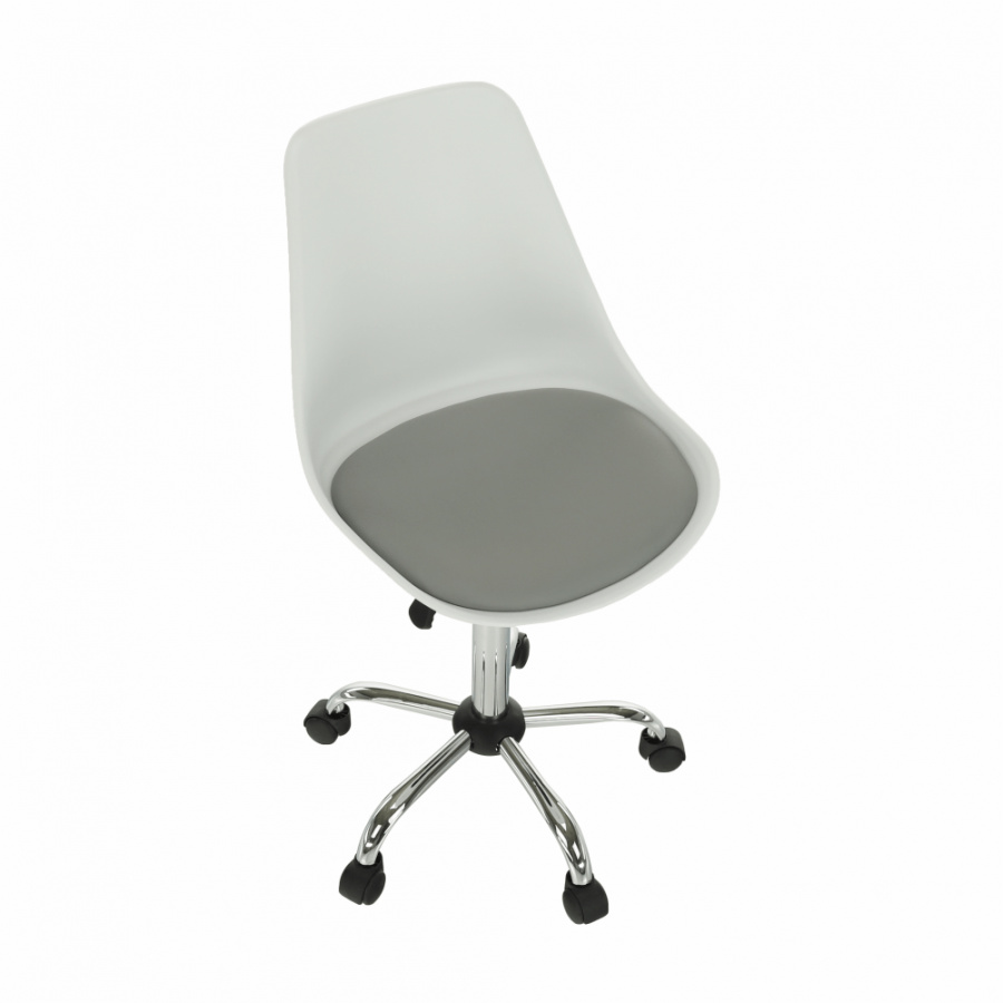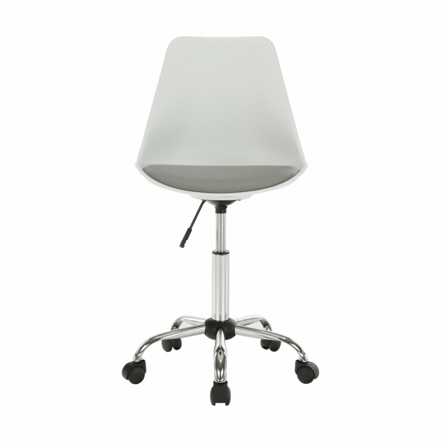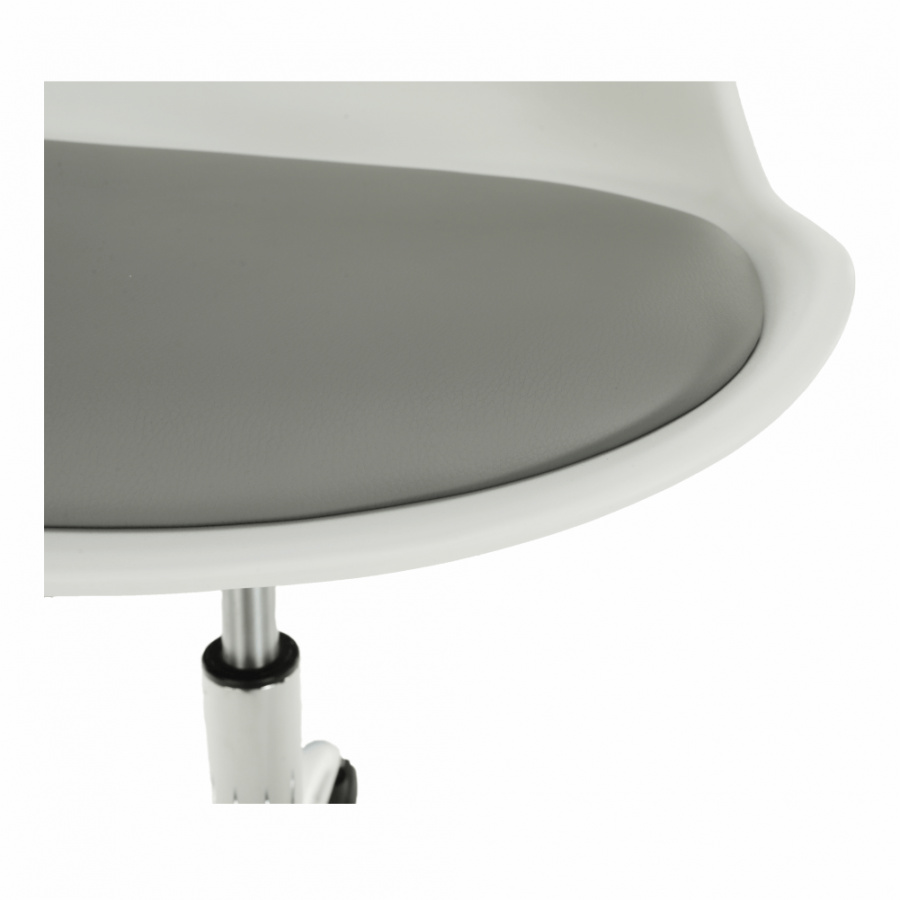 Materiál: plast / ekokůže / chrom Barva: bílá / šedá / chromovaná Rozměry (ŠxHxV): 48x54x87,5-100 cm Nastavitelná výška sedu Výška sedu: 52-63 cm Hloubka sedu: 42 cm Nosnost: 100 kg Opěrka zad (ŠxV): 30 / 45x40 cm Sedadlo (ŠxH): 48x41 cm Dodávané v demontu