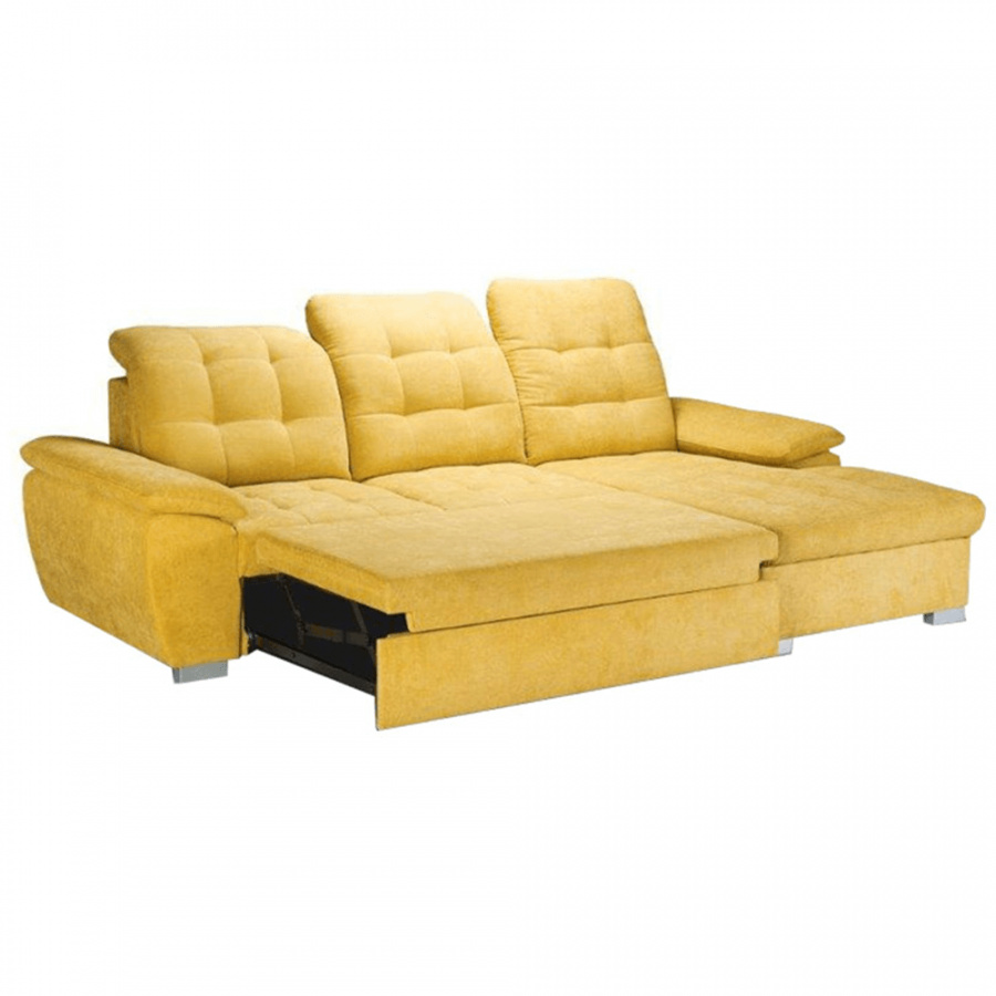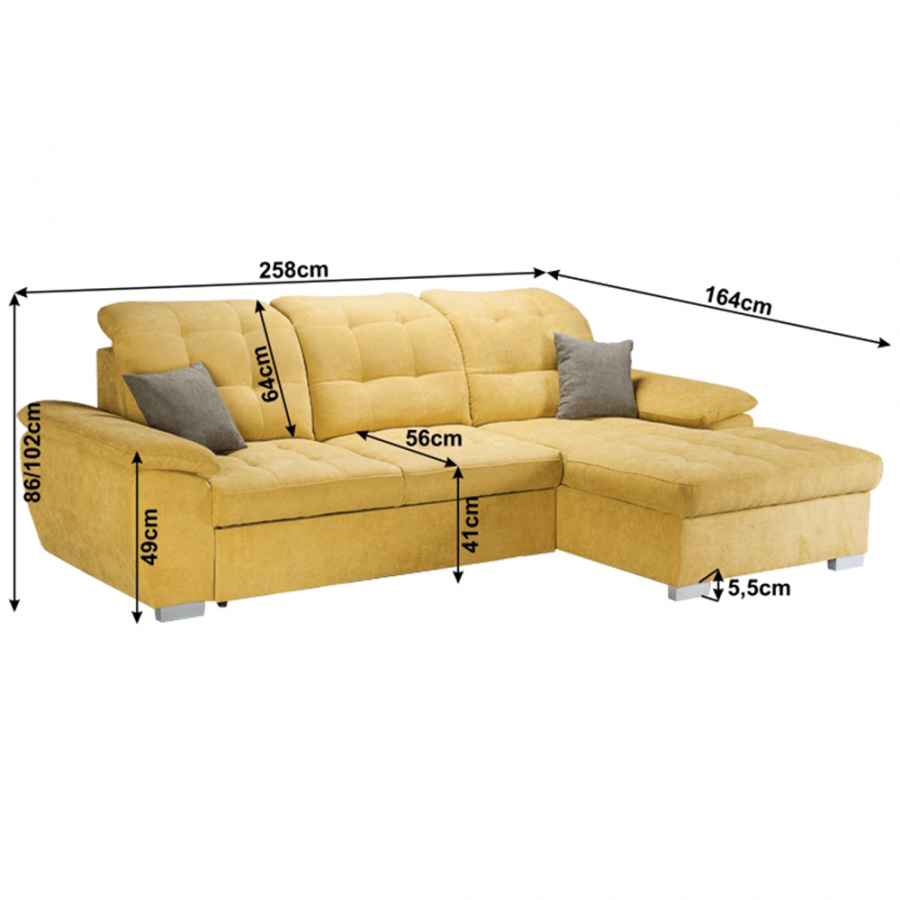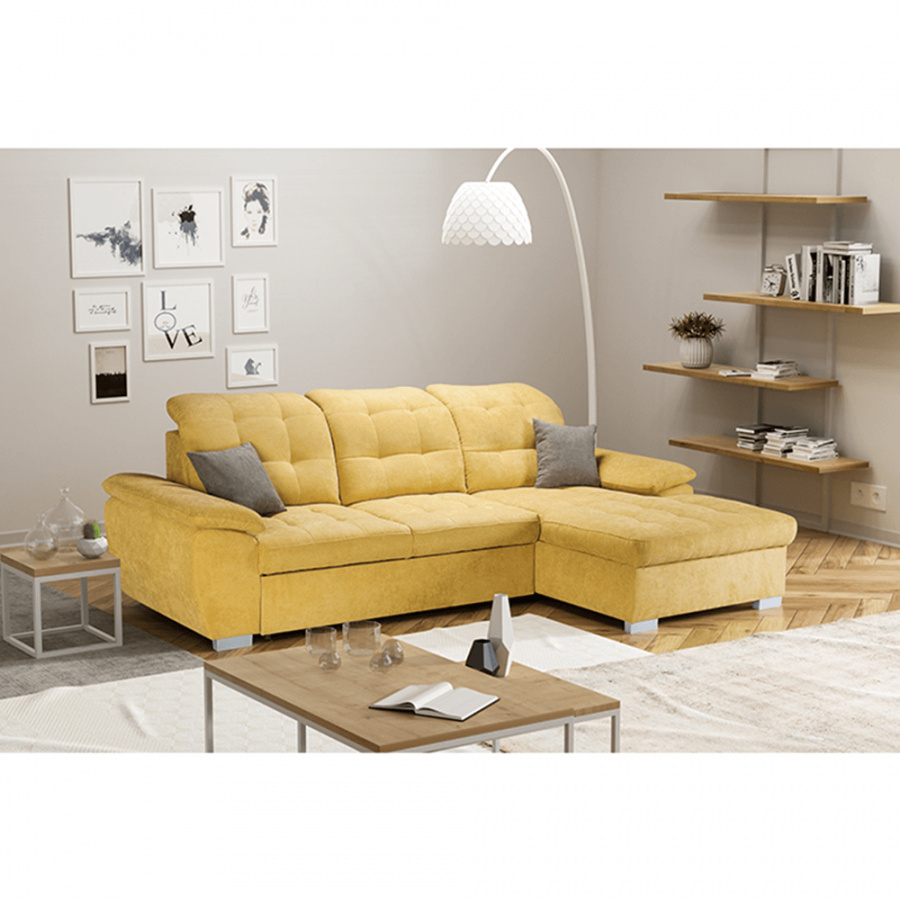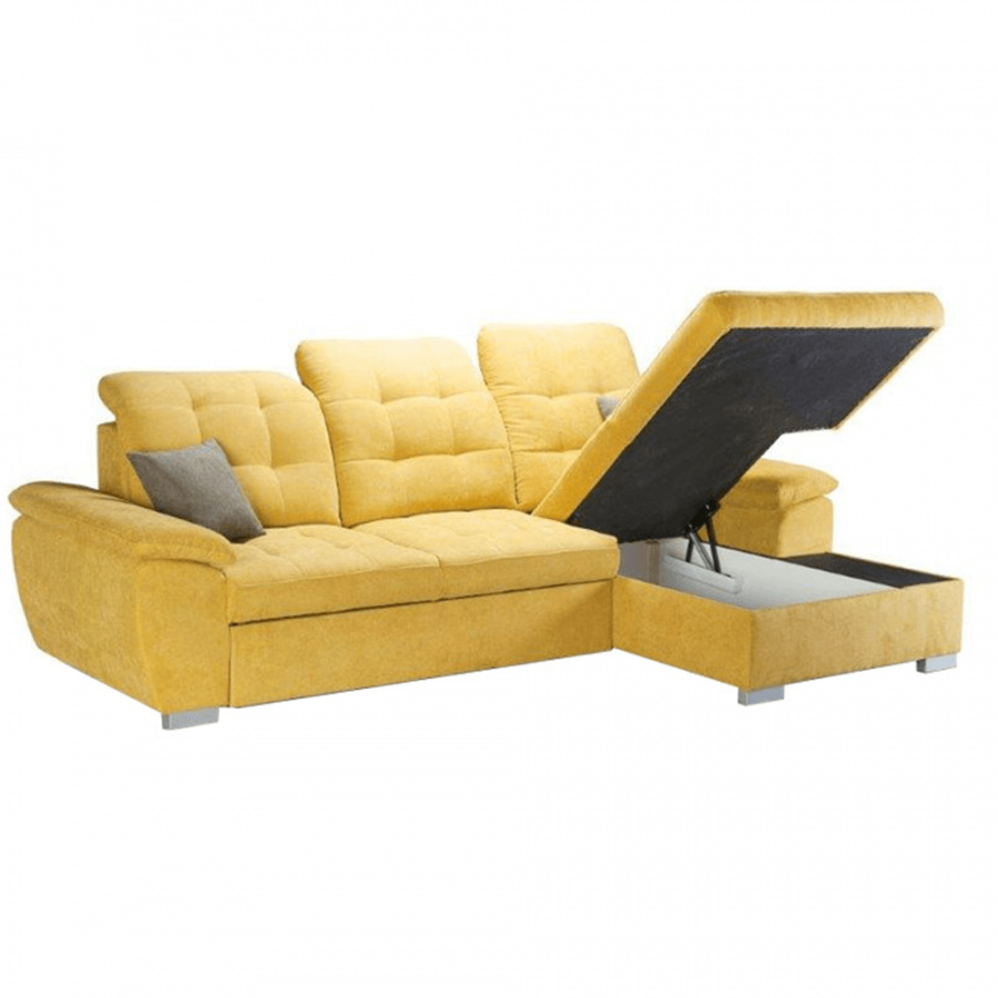 Rohová celočalouněná rozkládací sedací souprava s úložným prostorem EVANGELIN