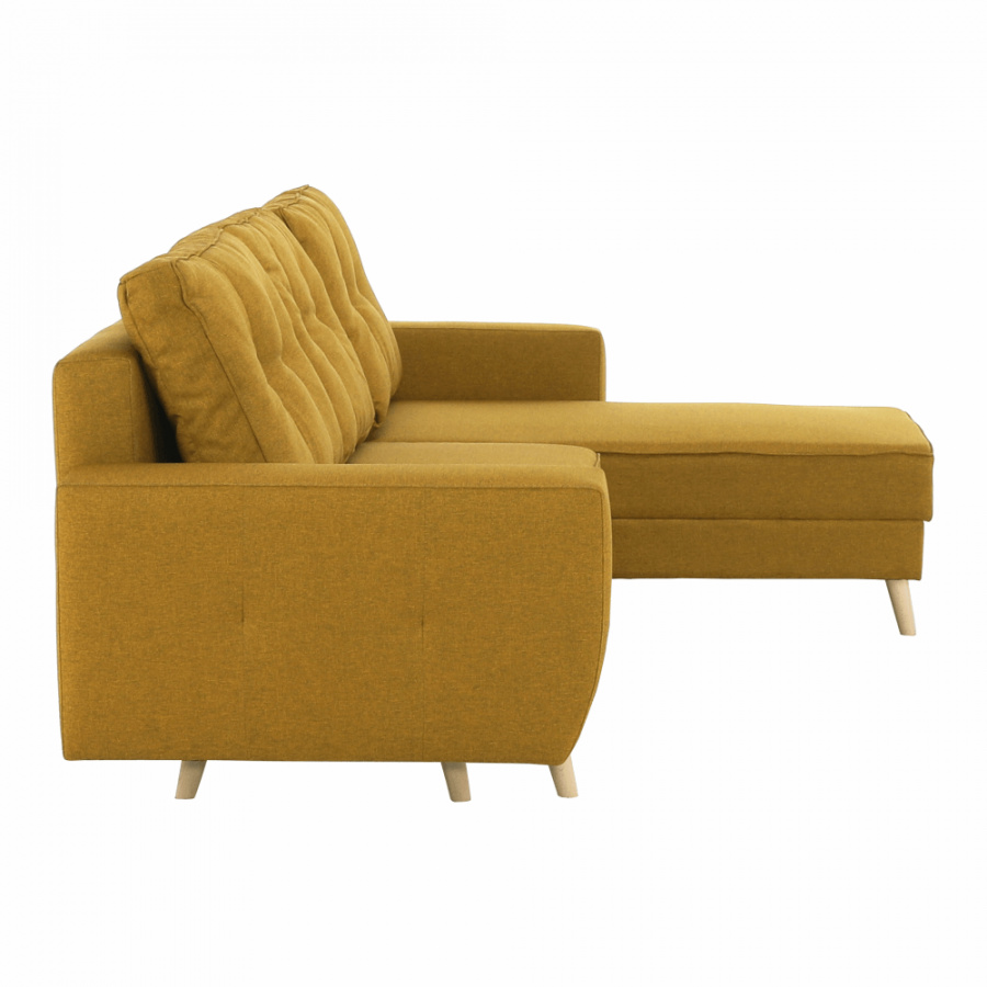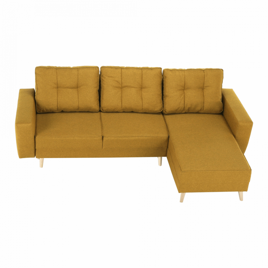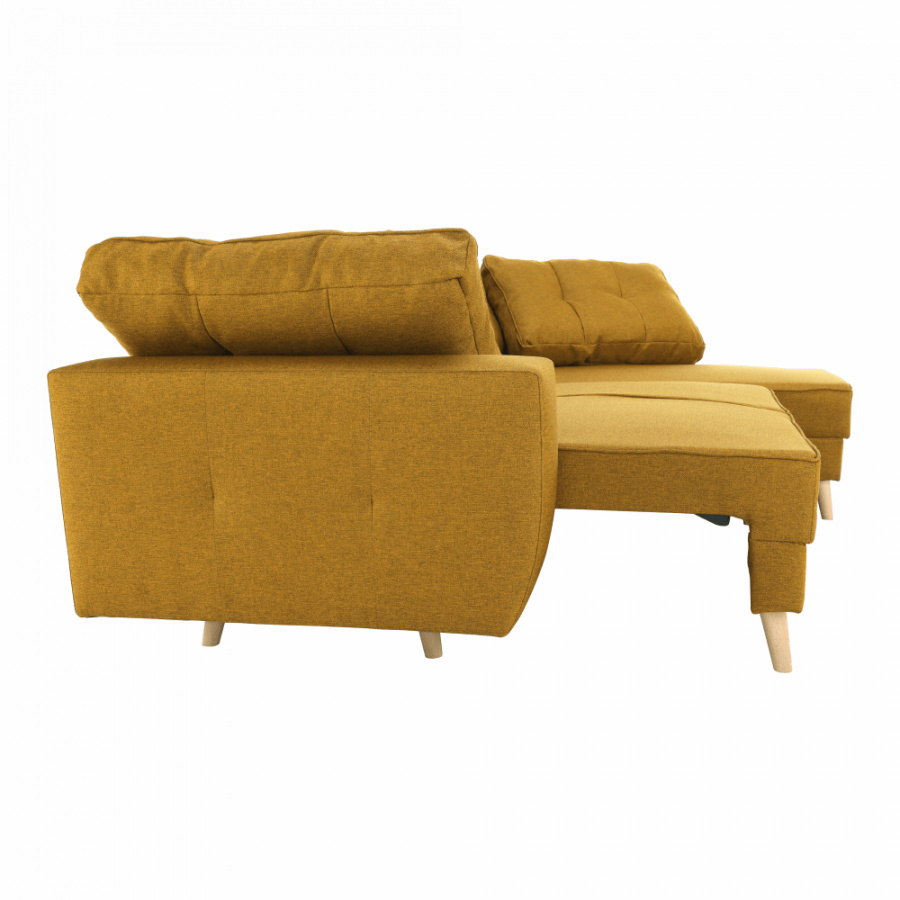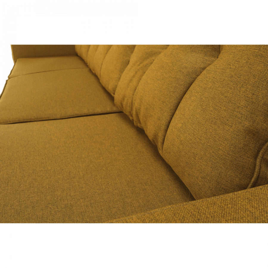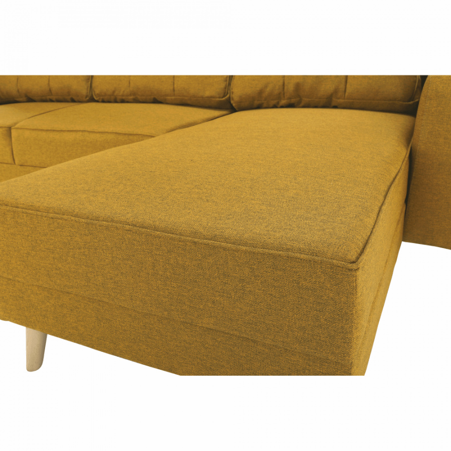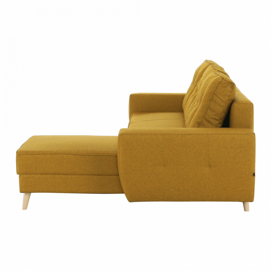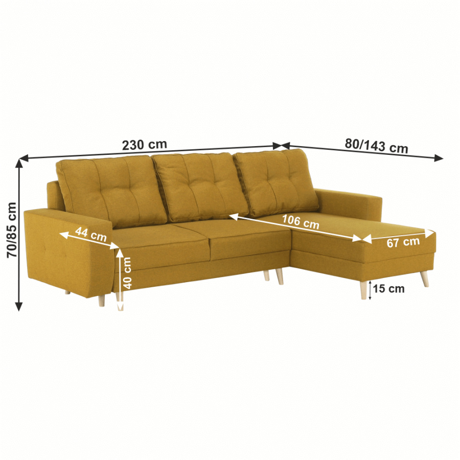 Rohová celočalouněná rozkládací sedací souprava s úložným prostorem VINCENT ROH Materiál: látka Malmo Barva: 41 hořčičný melír Rozměry (ŠxHxV): 230x80 / ??143x70 / 85 cm Plocha na spaní (ŠxD): 120x195 cm Výška sedu: 40 cm Hloubka sedu: 44/106 cm Výška spodního prostoru od podlahy: 15 cm Šířka otomanu s rohem: 67 cm Univerzální Dodávané v demontu
