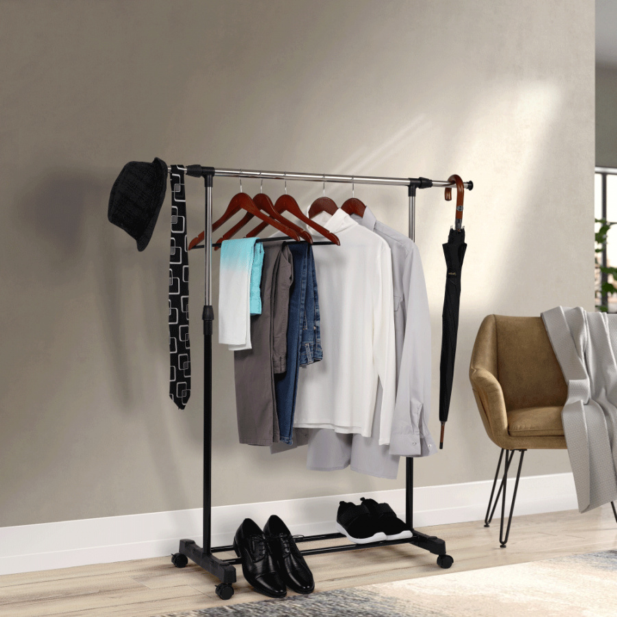 Pojízdný věšák, nerezový kov / černý plast, HILAR