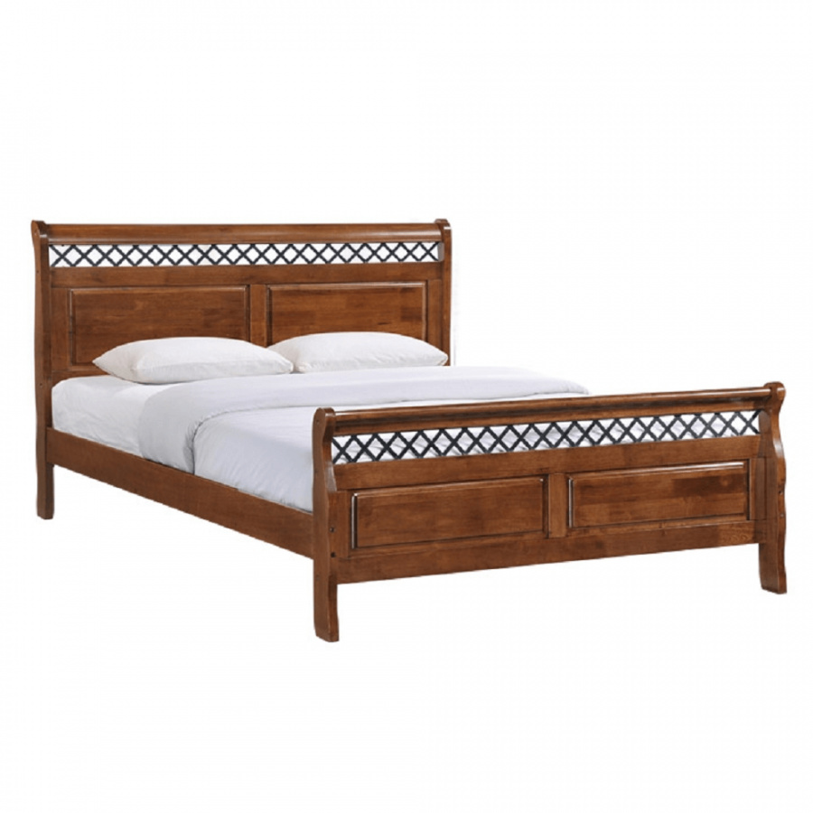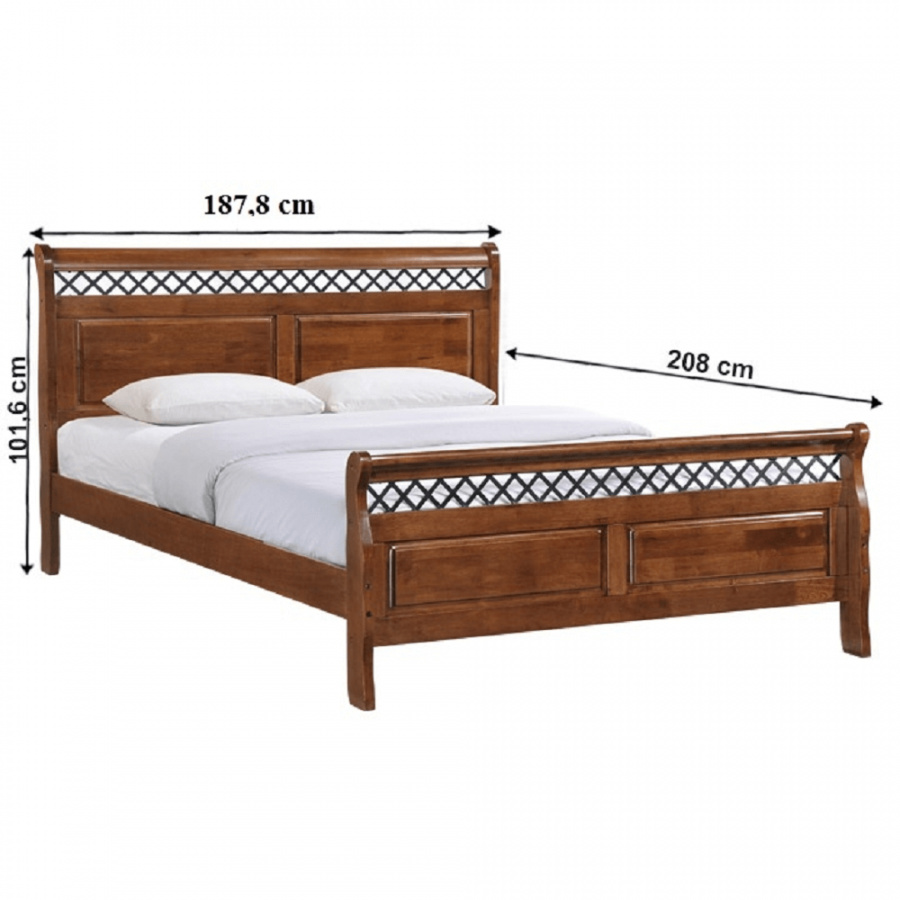 Materiál: masivní dřevo / MDF Barva: dub tmavý Rozměry postel (ŠxHxV): 187,8x208x101,6 cm Rozměry plochy na spaní (ŠxHxV): 180x200 cm Výška po rošt: 25,7 cm ozdobné prvky Postel dodávána s laťkovým roštem Dodávána bez matrace Možnost dokoupit matrace z naší nabídky Dodávané v demontu