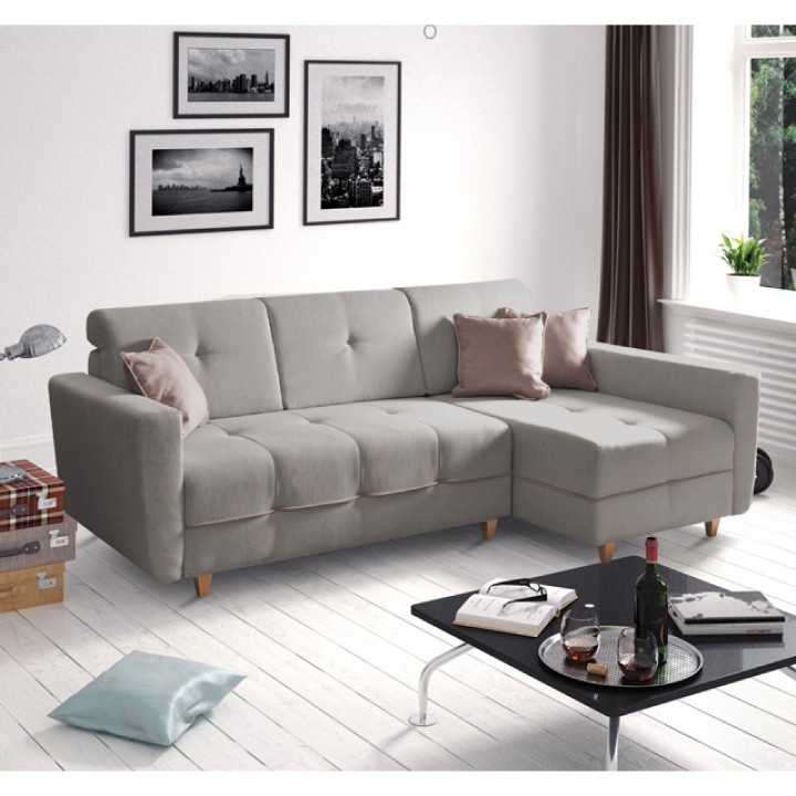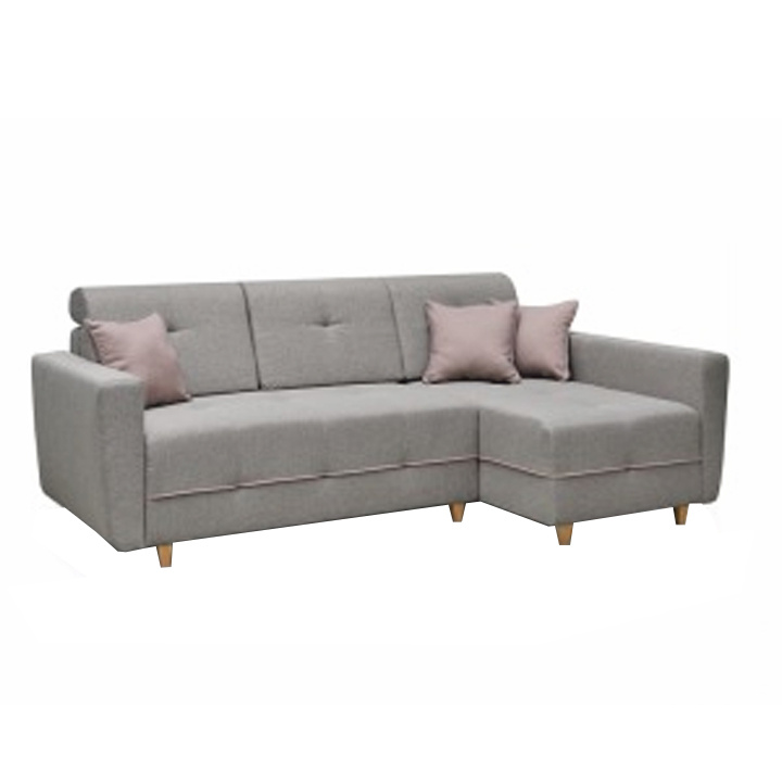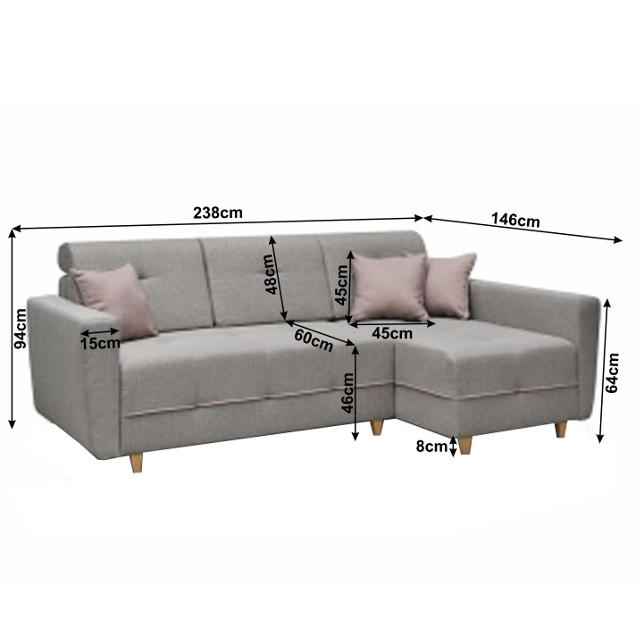 Rohová celočalouněná rozkládací sedací souprava s úložným prostorem HAKAN Materiál: látka MALMO NEW 90/61 / dřevo Barva: 90 šedá / 61 pudrově růžové Rozměry (ŠxHxV): 238x146x94 cm Plocha na spaní (ŠxD): 145x206 cm Výška úložného prostoru od podlahy: 8 cm Výplň: pružina faliste / HR pěna Výška sedu: 46 cm Hloubka sedu: 60 cm Pravé provedení. Dekorativní polštářky. Dodávané v demontu.
