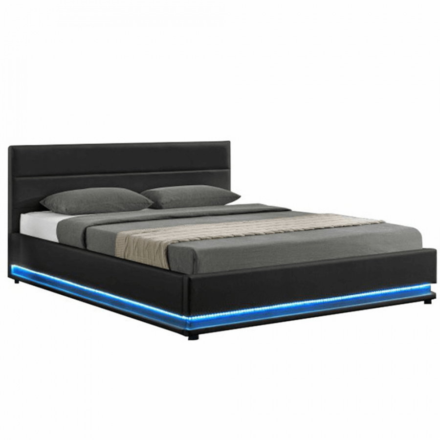 Moderní postel s úložným prostorem a lamelovým roštem včetně LED osvětlení.