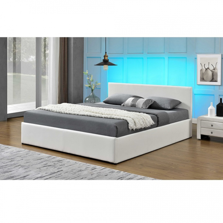 Postel s úložným prostorem a výklopným lamelovým roštem včetně RGB LED osvětlení.
