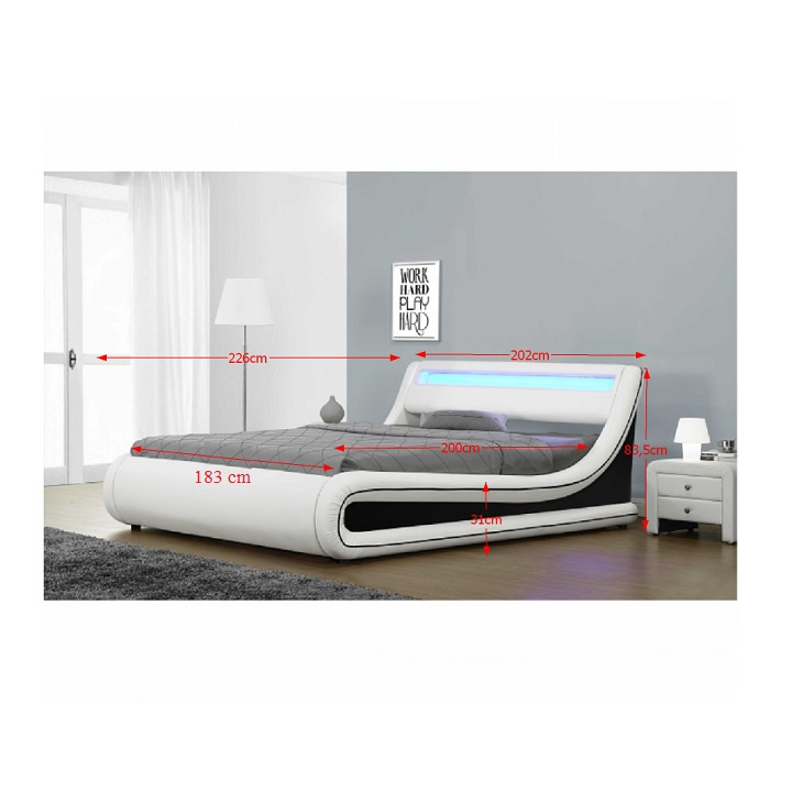 K posteli doporučujeme zakoupit matraci s rozměrem 183x200 cm.