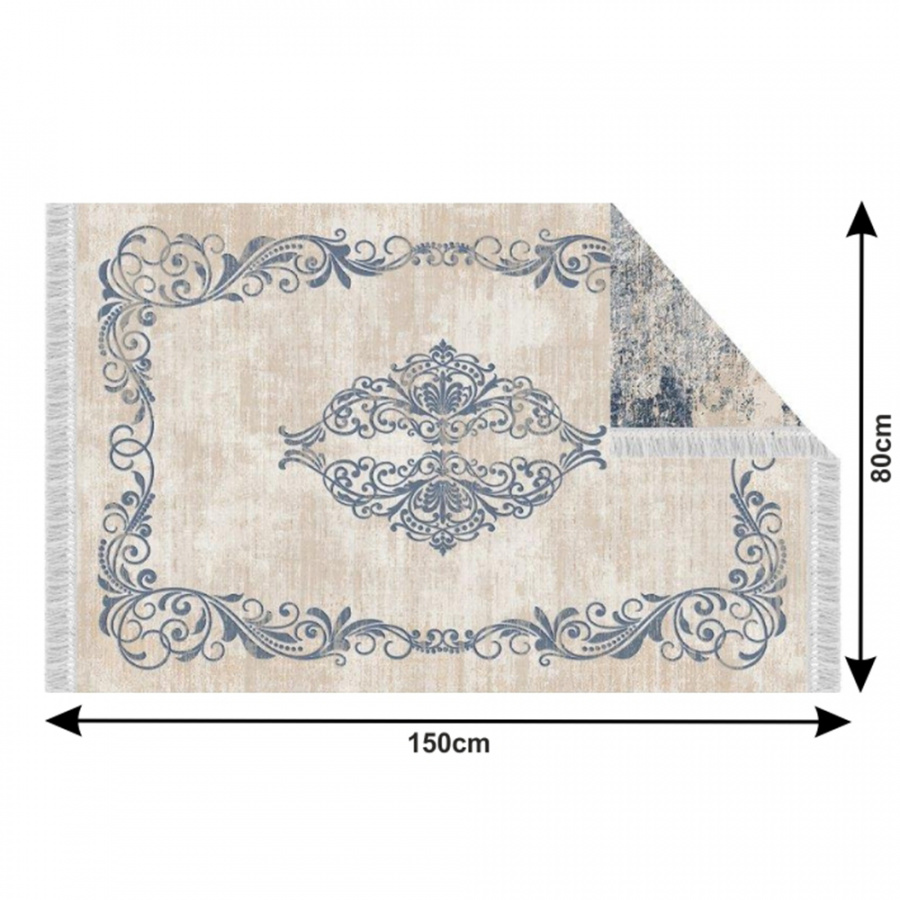 koberec GAZAN Materiál: 60% polyester / 40% bavlna Rozměry (ŠxD): 80x150 cm Barva: vzor / modrá Tloušťka koberce: 0,5 cm Hmotnost vlasu: 1500g / m2 oboustranný s třásněmi